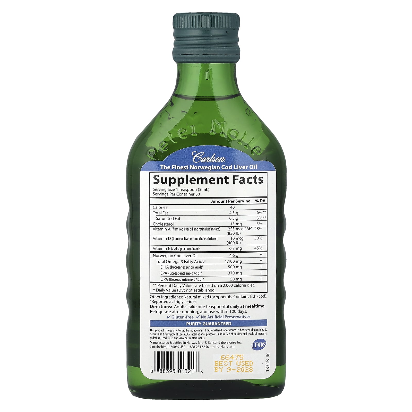 Жир печени трески от Carlson получил множество наград за вкус и качество. Одна чайная ложка содержит 1100 мг омега-3, включая ЭПК и ДГК, которые поддерживают здоровье сердца, мозга, зрения и суставов. Для обеспечения максимальной свежести жир печени трески тщательно контролируется от моря до магазина.
