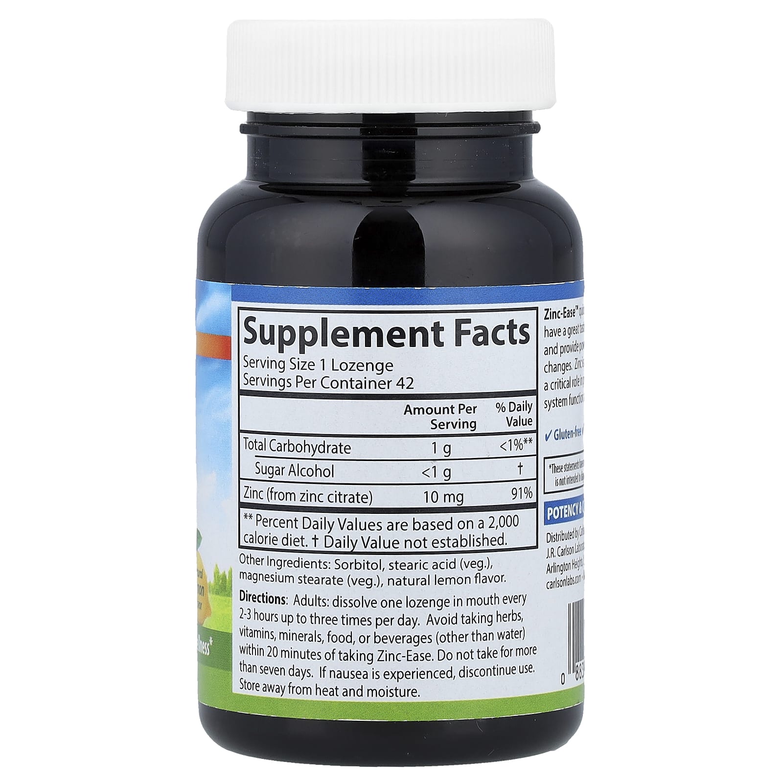 Carlson, Zinc-Ease™, успокаивающие пастилки, натуральный лимонный вкус, 42 пастилки