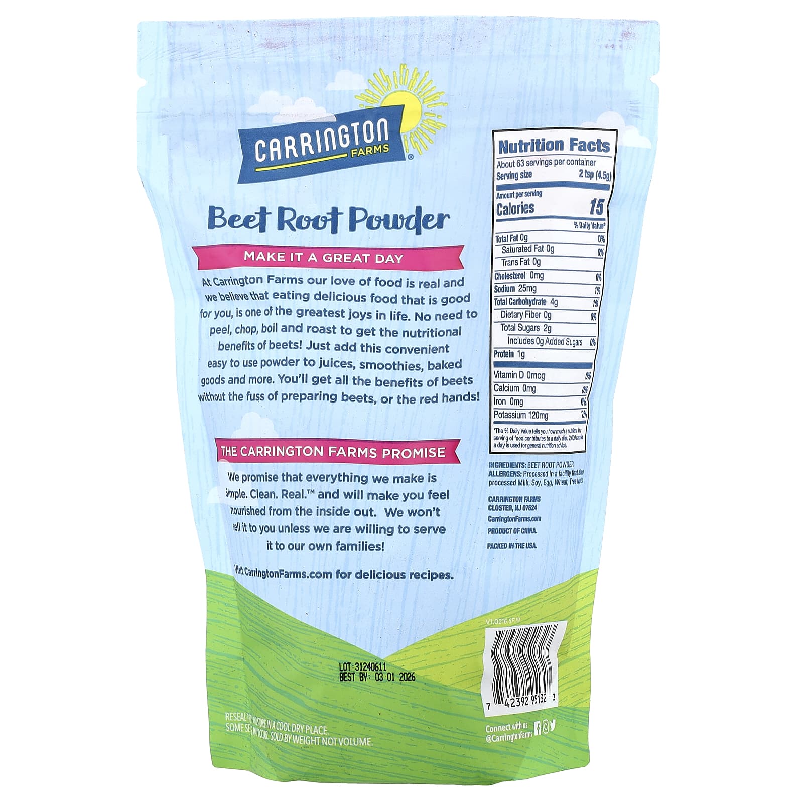 В Carrington Farms мы по-настоящему любим еду и считаем, что вкусная и полезная еда - одна из самых больших радостей в жизни. Свеклу не нужно чистить, нарезать, варить и обжаривать! Просто добавляйте этот удобный порошок в соки, смузи, выпечку и многое другое. Вы получите все преимущества свеклы без суеты, связанной с приготовлением свеклы, и без красных рук!