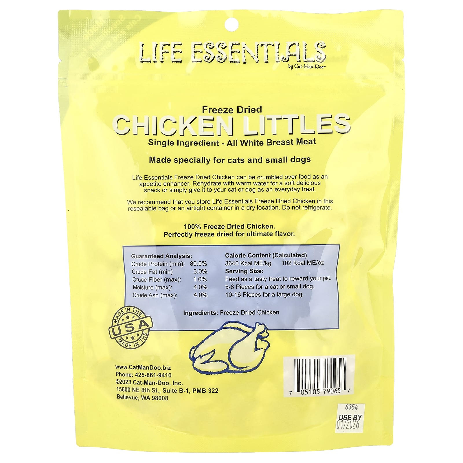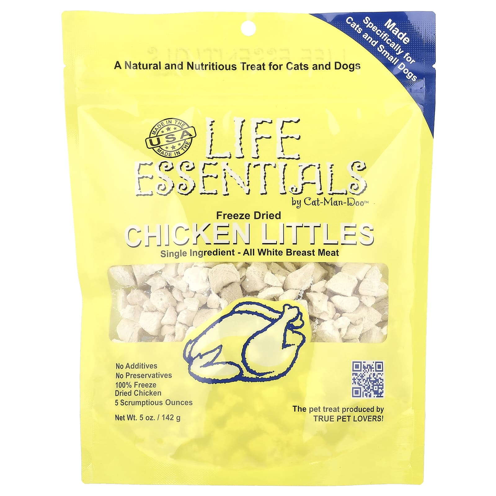Эти маленькие курицы тщательно приготовлены из 100% чистого белого мяса курицы, что обеспечит высококачественное угощение для ваших пушистых друзей. Они полностью готовятся для уничтожения любых потенциальных бактерий, а затем сублимируют до идеального состояния без использования химикатов и консервантов.