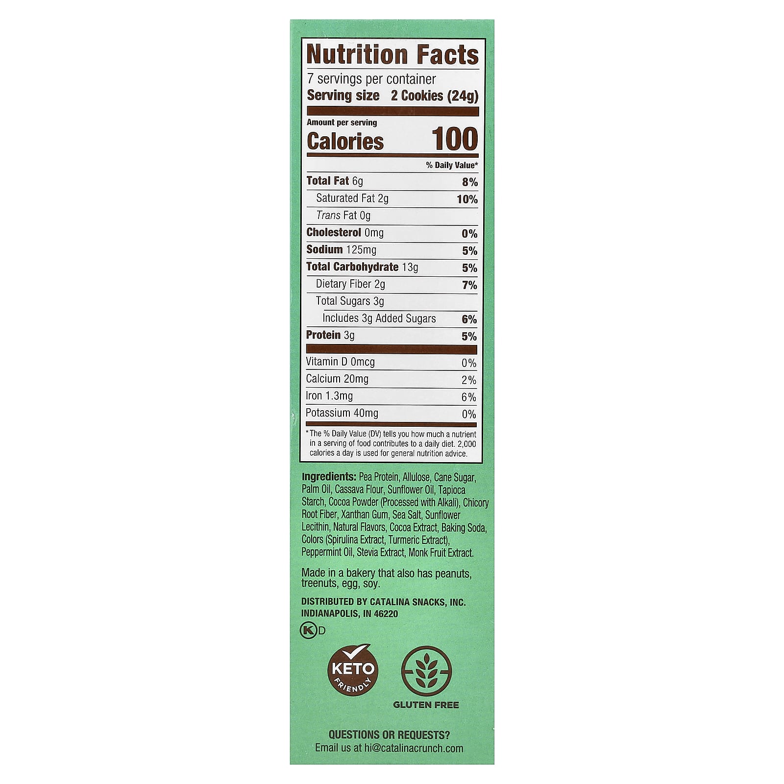 Гороховый протеин, аллюлоза, тростниковый сахар, пальмовое масло, мука из кассавы, подсолнечное масло, тапиоковый крахмал, какао-порошок (обработанный щёлочью), клетчатка из корня цикория, ксантановая камедь, морская соль, подсолнечный лецитин, натуральные ароматизаторы, экстракт какао, пищевая сода, красители (экстракт спирулины, экстракт куркумы), масло перечной мяты, экстракт стевии, экстракт архата.