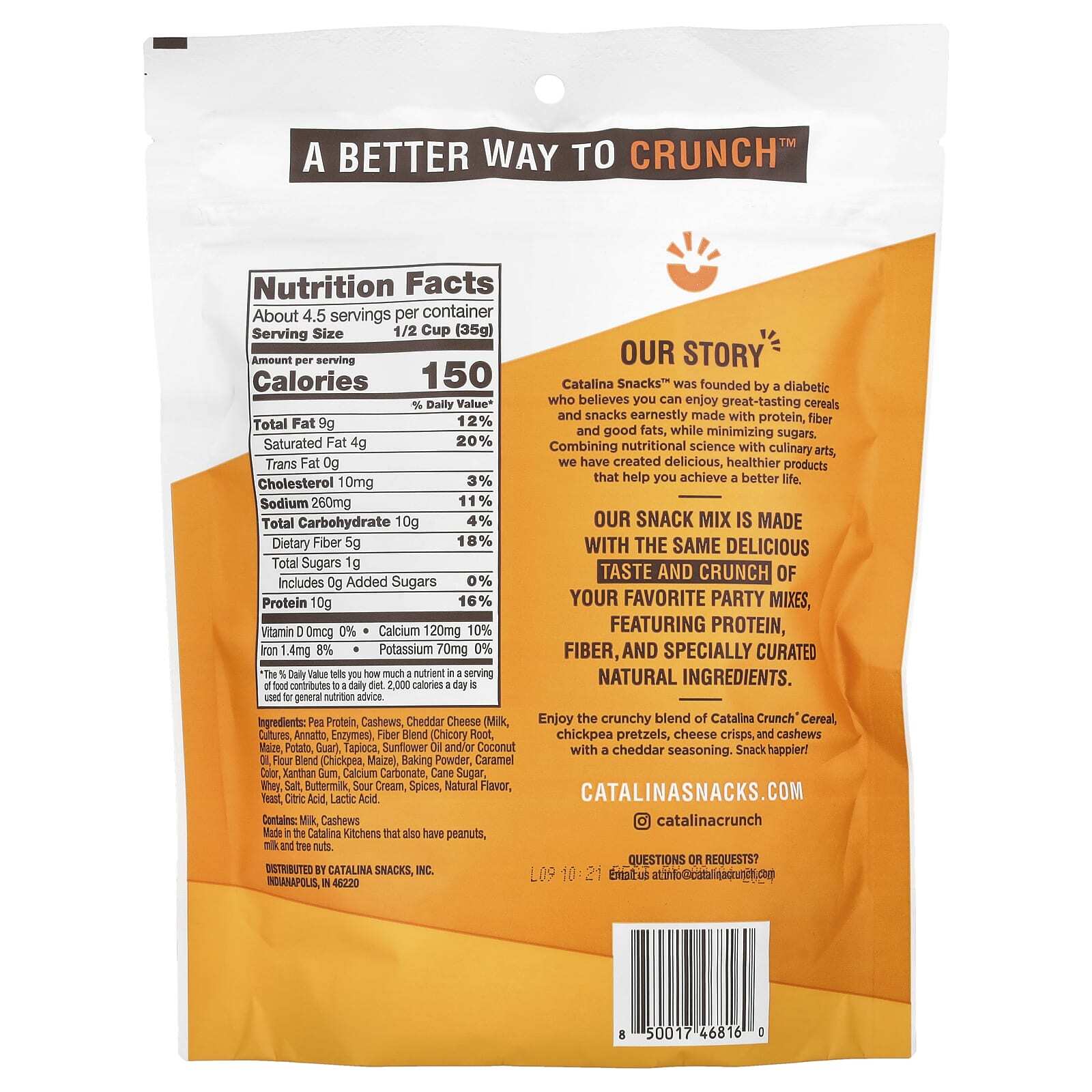 Наслаждайтесь хрустящей смесью хлопьев Catalina Crunch, крендельков с нутом, чипсов из сыра и кешью с приправой чеддер. Ешьте еще вкуснее!