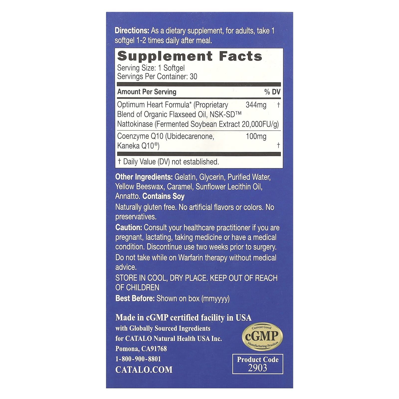 | Оптимальная формула для сердца (Запатентованная смесь) Органическое льняное масло, наттокиназа (из ферментированного экстракта соевых бобов) (NSK-SD ™) 20 000 FU / г | 344 мг | † |