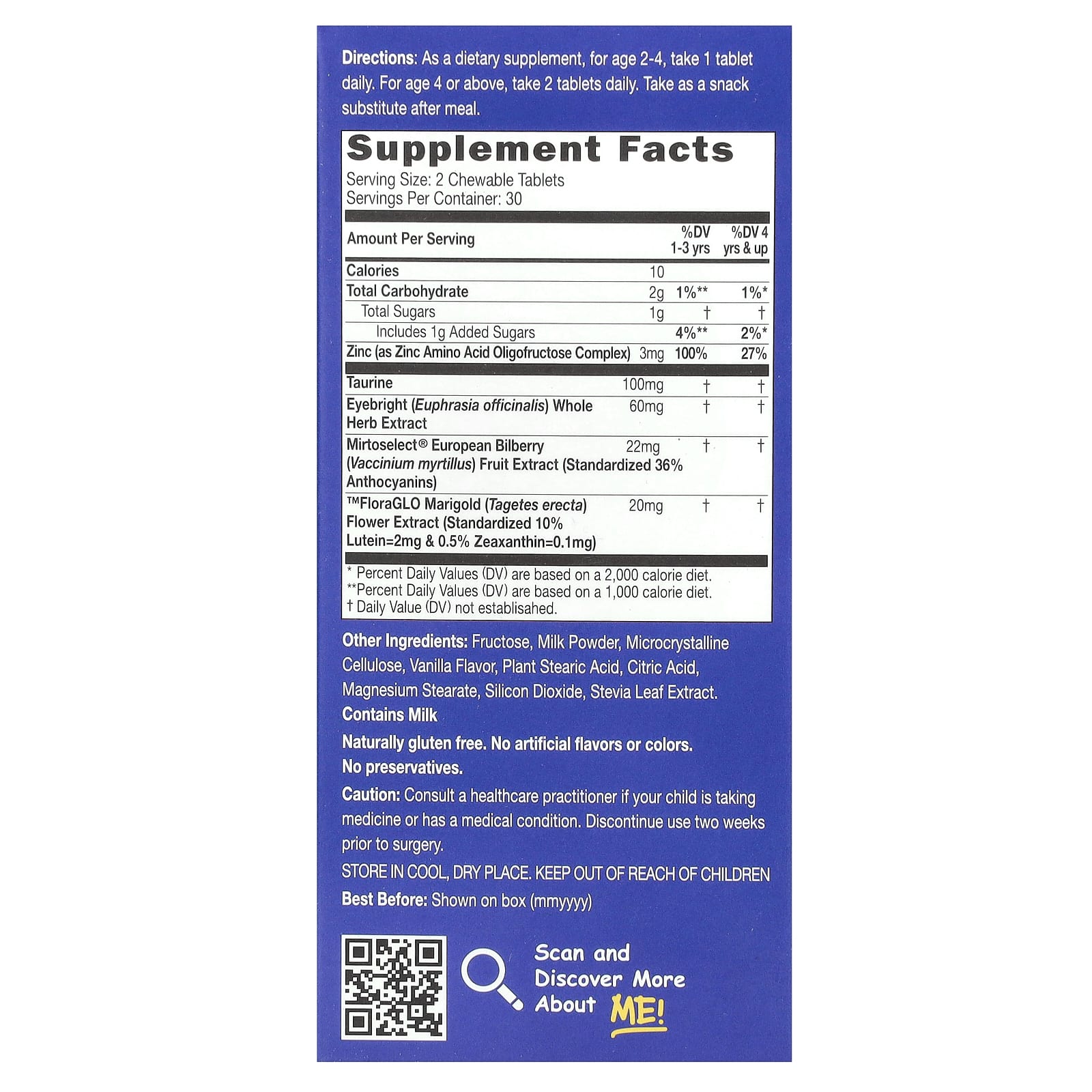 - Содержит таурин и цинк, специально разработанные для поддержания здорового зрения у детей.