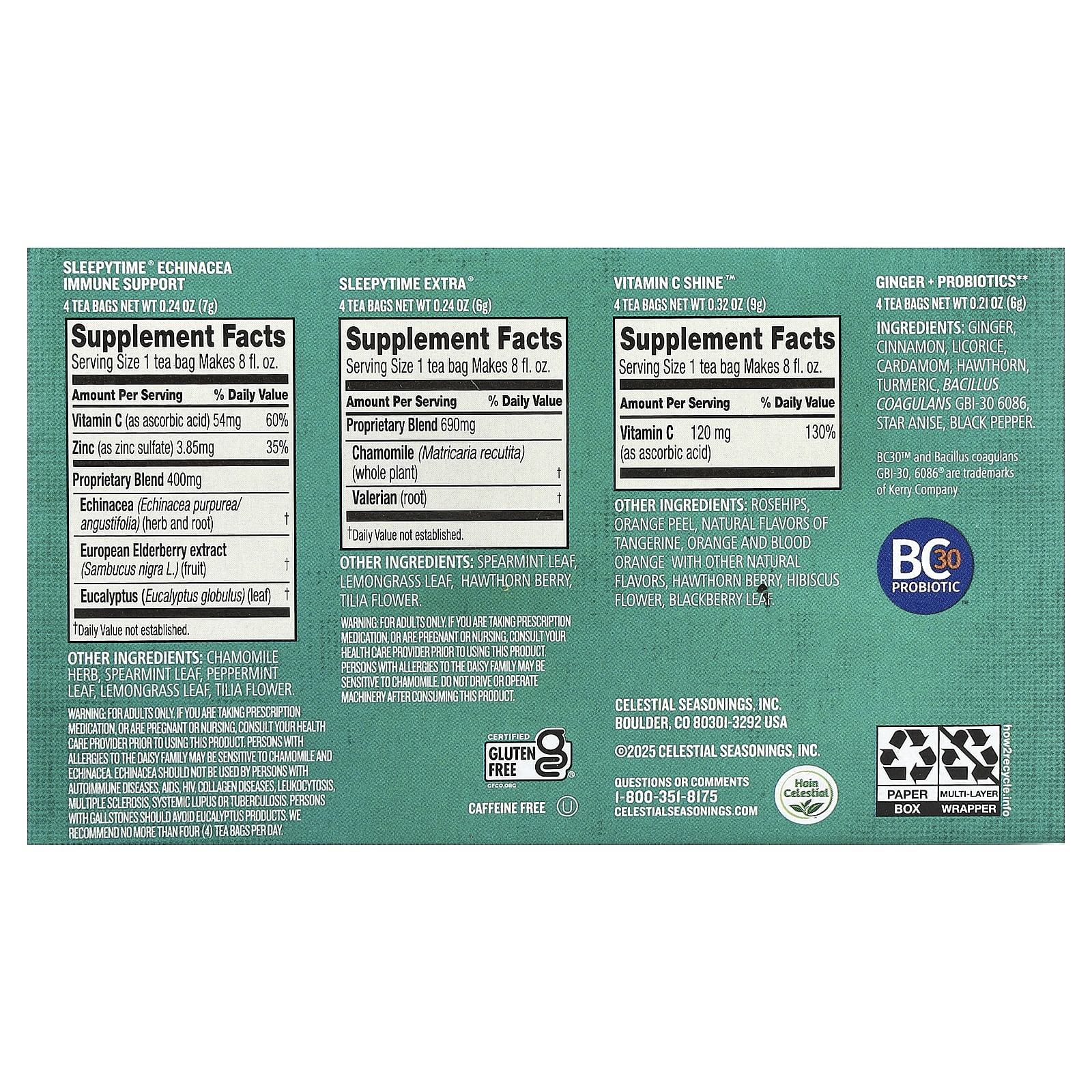 | Размер порции: 1 чайный пакетик — 240 мл (8 жидк. унций) | ||