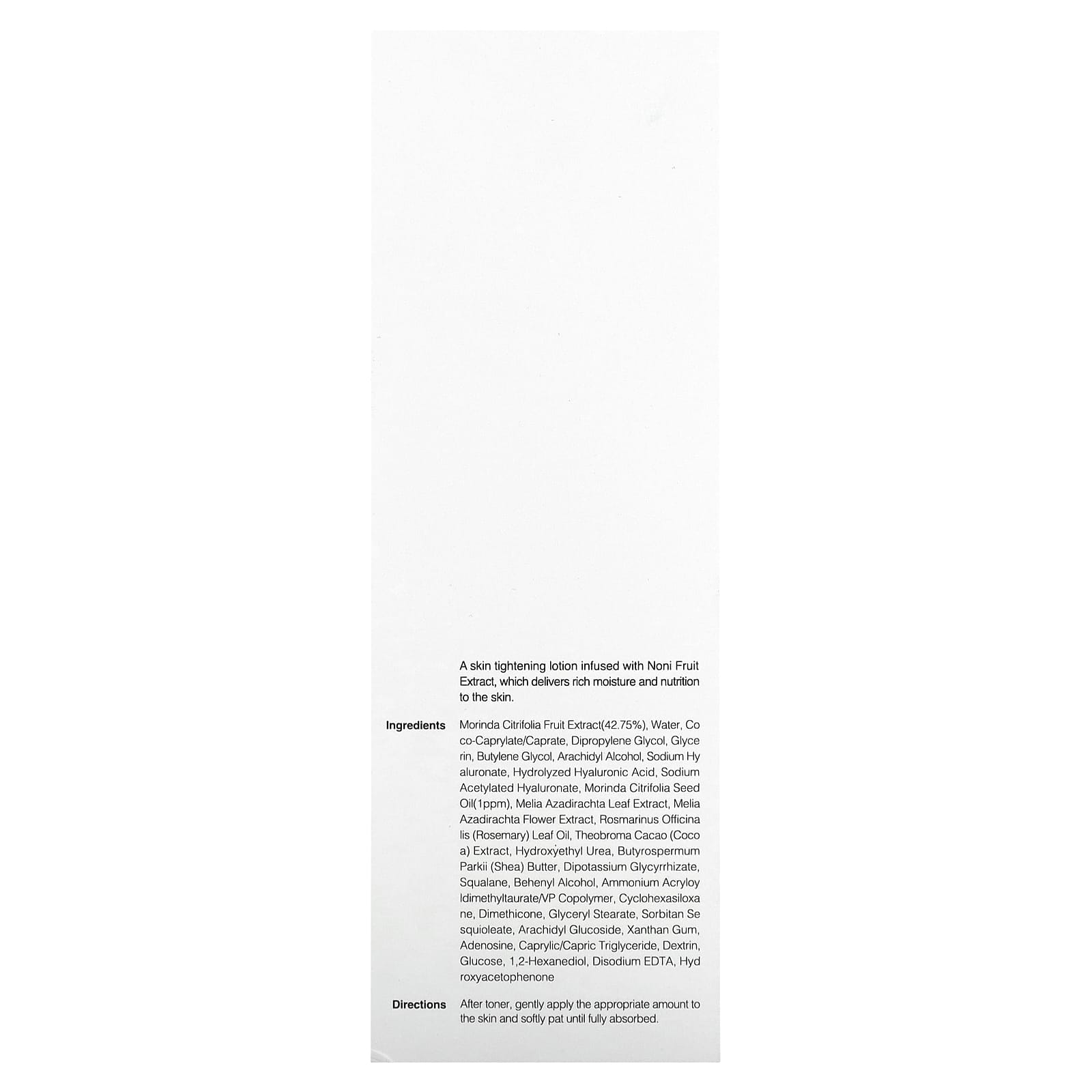 Лосьон для подтяжки кожи с экстрактом плодов нони, который насыщает кожу влагой и питательными веществами.