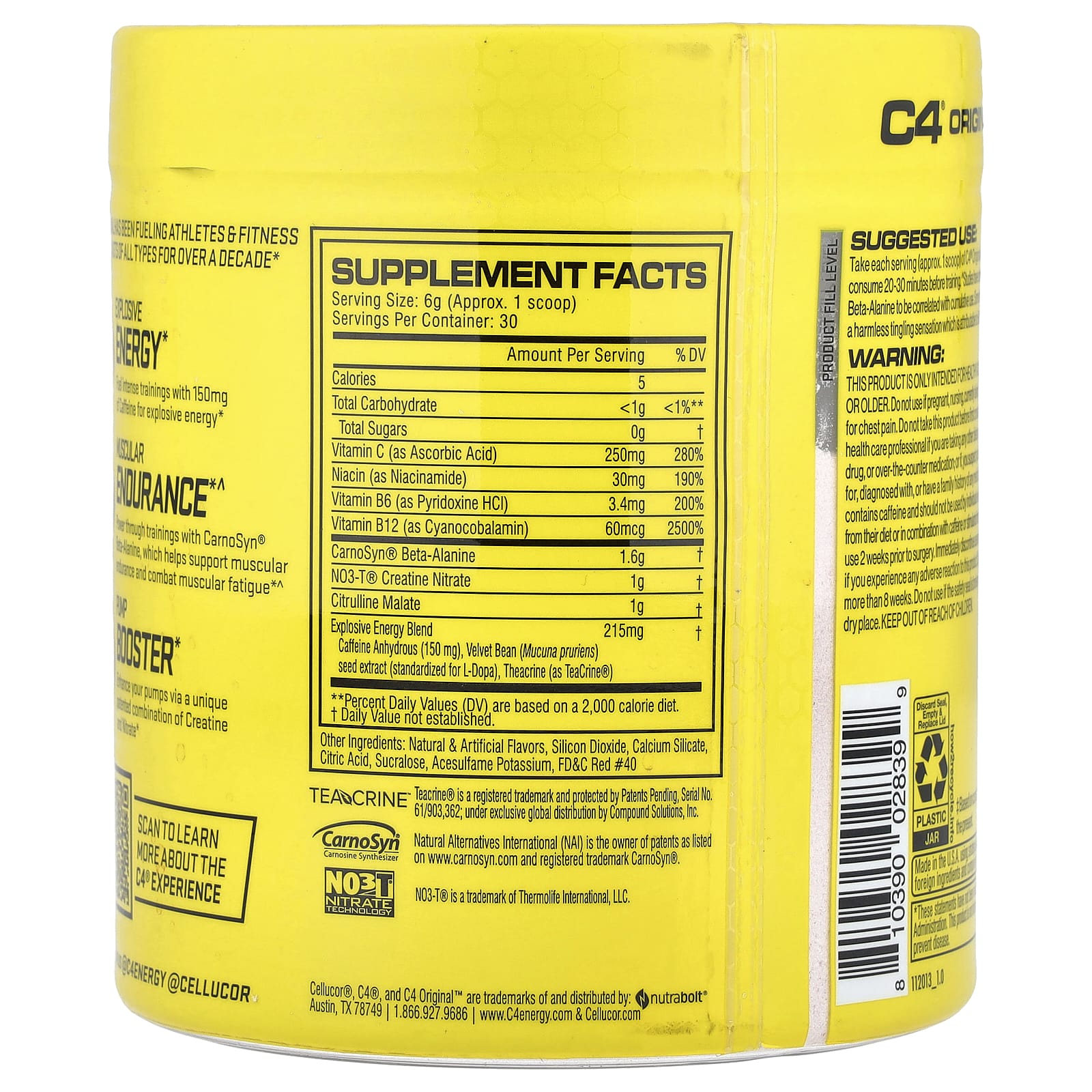 C4 / Cellucor, C4® Original, предтренировочный комплекс, со вкусом фруктового пунша, 180 г (6,3 унции)
