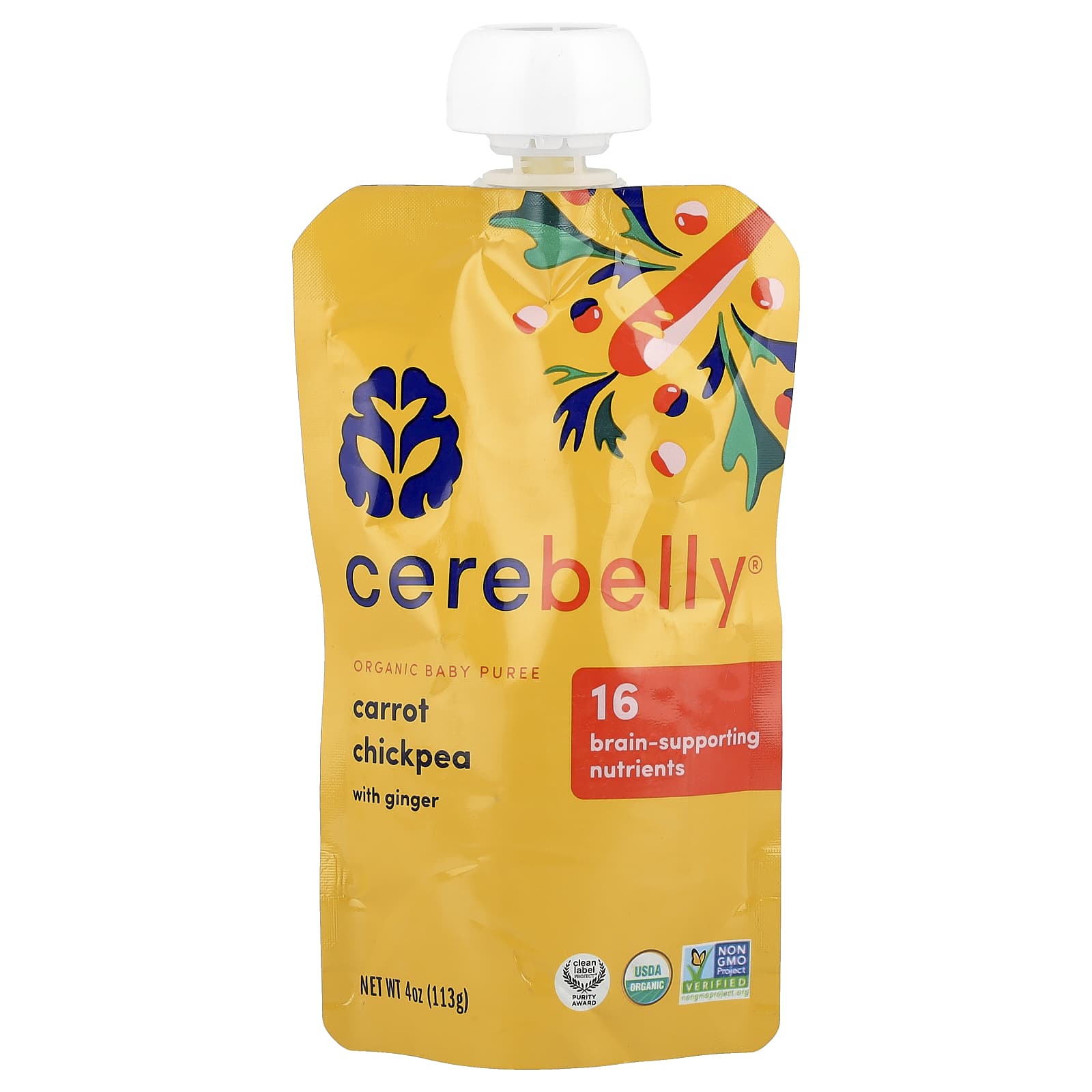 Хрустящая морковь, ореховый нут и немного имбиря помогают пробудить в ребенке любопытство к новым вкусам. Эта мощная комбинация, богатая цинком, витамином B6, белком и холином, а также 12 другими питательными веществами для мозга, поддерживает области мозга, которые контролируют когнитивные навыки, такие как выражение эмоций, решение проблем и речь, а также части тела. который помогает малышу узнавать лица (Привет, мама!). Разработано для малышей, но лакомиться могут все!