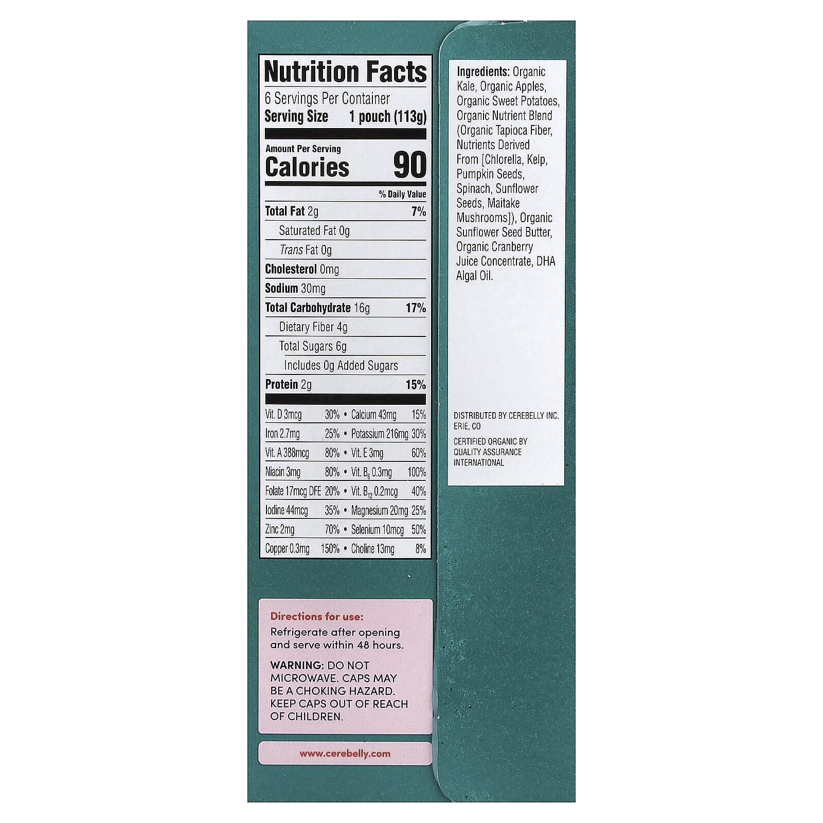 Органическая капуста, органические яблоки, органический батат, смесь органических питательных веществ (органическая тапиоковая клетчатка, питательные вещества, полученные из [хлореллы, морские водоросли, семена тыквы, шпинат, семена подсолнечника, гриб-баран]), органическое подсолнечное масло, концентрат органического клюквенного сока, масло водорослей ДГК.