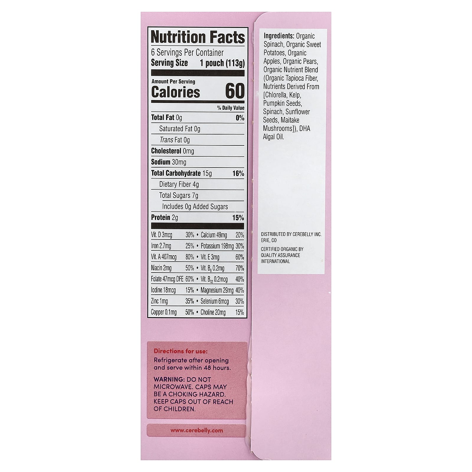 Cerebelly, органическое пюре, для детей от 6 месяцев, шпинат, яблоко, батат, 6 пакетиков по 113 г (4 унции)