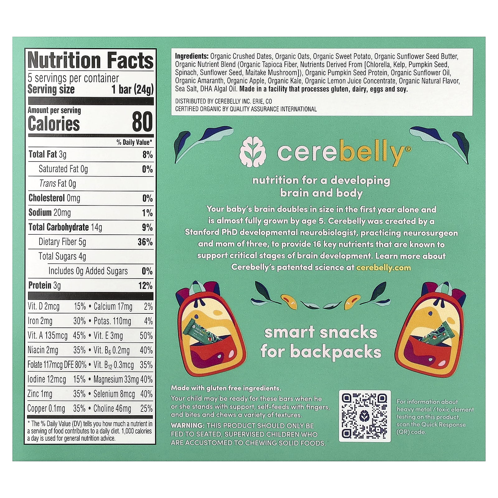 Только за первый год жизни мозг ребенка увеличивается в два раза, а к 5 годам он почти полностью формируется. Компания Cerebelly была создана нейробиологом и специалистом в области развития мозга, доктором наук из Стандфорда, работающим нейроХирургом и мамой троих детей, чтобы обеспечить организм 16 ключевыми питательными веществами, которые, как известно, поддерживают критические этапы развития мозга.
