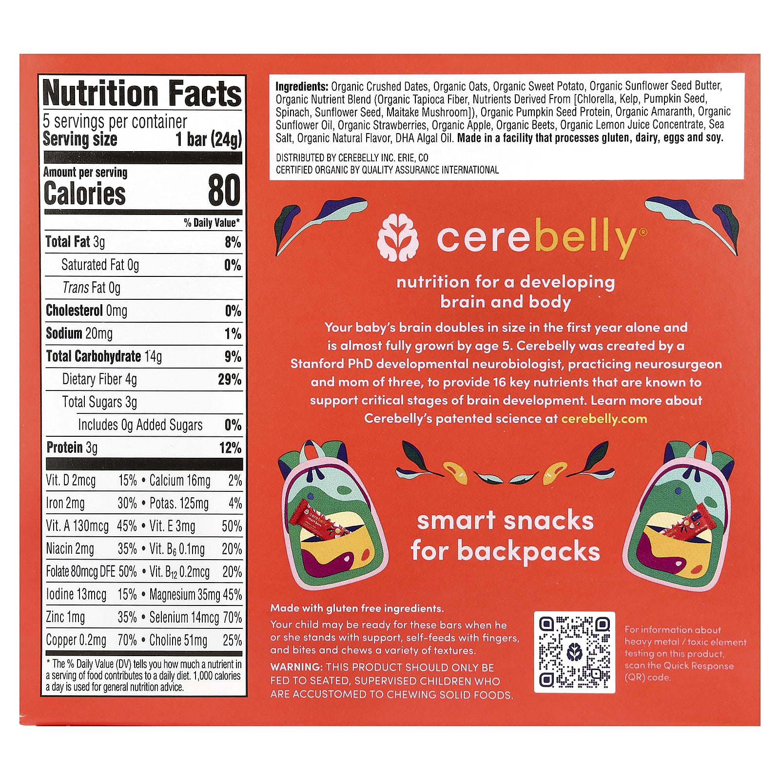 Только за первый год жизни мозг ребенка увеличивается в два раза, а к 5 годам он почти полностью формируется. Компания Cerebelly была создана нейробиологом и специалистом в области развития мозга, доктором наук из Стандфорда, работающим нейроХирургом и мамой троих детей, чтобы обеспечить организм 16 ключевыми питательными веществами, которые, как известно, поддерживают критические этапы развития мозга.