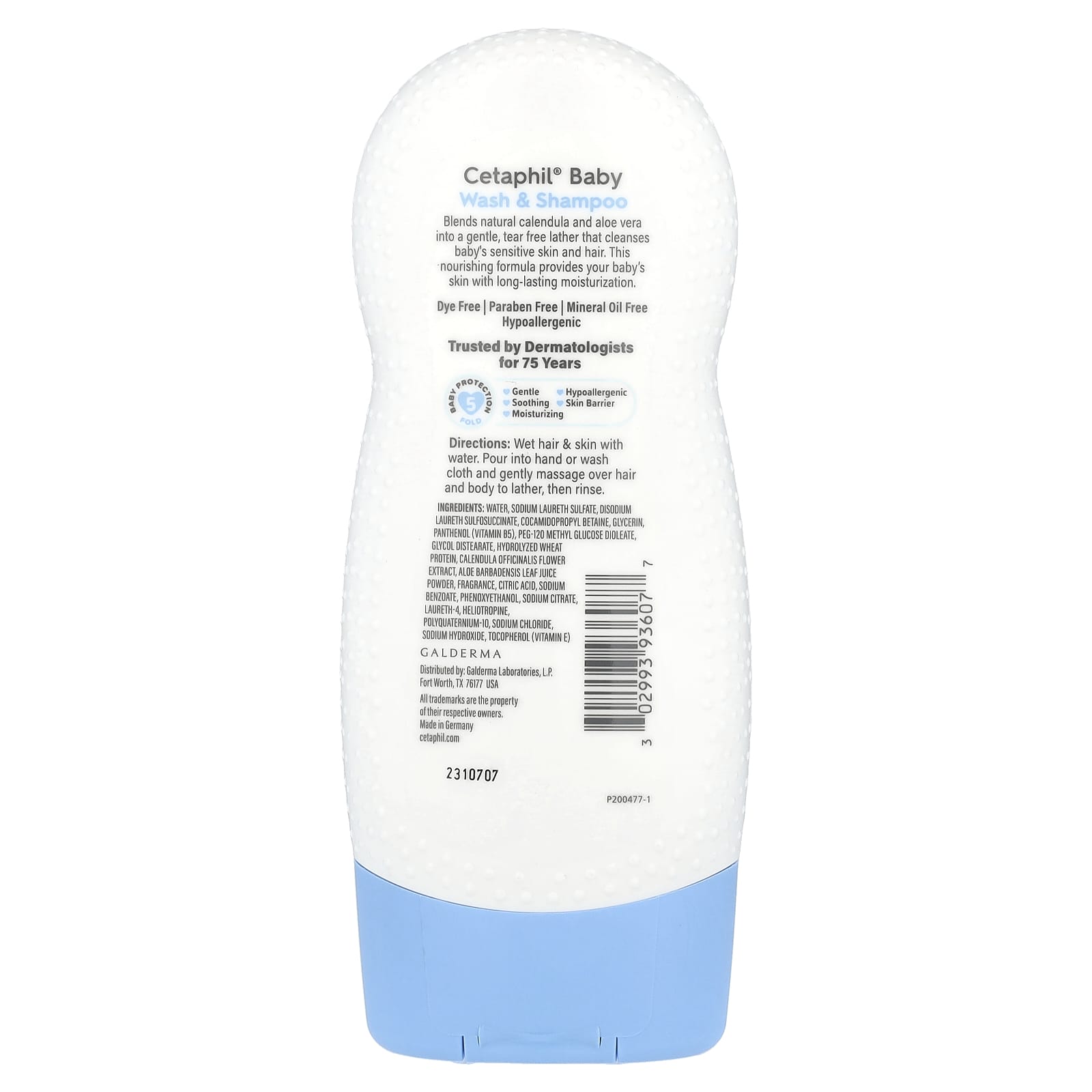 Содержит смесь из натуральных календулы и алоэ вера, образующих нежную пену, которая очищает чувствительную кожу и волосы ребёнка, не вызывая слёз. Это питательное средство обеспечивает длительное увлажнение кожи вашего ребёнка.