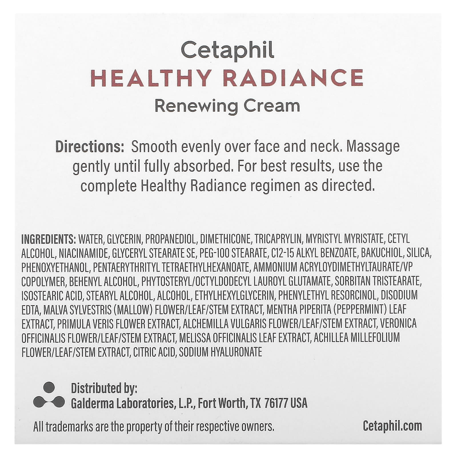 Вода, глицерин, пропандиол, диметикон, трикаприлин, миристил миристат, цетиловый спирт, никотинамид, глицерил стеарат эмульгирующий, ПЭГ-100 стеарат, c12-15 алкил бензоат, бакучиол, диоксид кремния, феноксиэтанол, пентаэритритил тетраэтилгексаноат, акрилоидиметилтаурат аммония / ВП сополимер, бегениловый спирт, фитостерил/октилдодецил лаурил глютамат, сорбитан тристеарат, изостеариновая кислота, стеариловый спирт, спирт, этилгексилглицерин, фенилэтил резорцин, двунатриевая ЭДТК, экстракт цветков / листьев / стеблей мальвы (Malva sylvestris), экстракт листьев перечной мяты (Mentha piperita), экстракт цветков первоцвета (Primula veris), экстракт цветков / листьев / стебля Alchemilla vulgaris, экстракт цветков / листьев / стебля вероники лекарственной (Veronica officinalis), экстракт листьев мелиссы лекарственной (Melissa officinalis), экстракт цветков / листьев / стебля Achillea millefolium, лимонная кислота, гиалуронат натрия.
