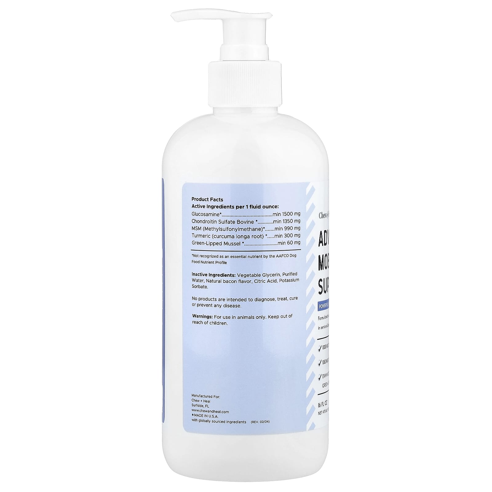 Забудьте о боли и дискомфорте в суставах вашей собаки с помощью высокоэффективной жидкой добавки для поддержки подвижности Chew + Heal. Эта высокоэффективная жидкая добавка специально разработана с высоким содержанием глюкозамина и хондроитина для поддержания здоровья суставов и хрящей. Эта добавка идеально подходит для пожилых собак, а также для хромых собак или тех, кто нерешителен для физических нагрузок. Эту добавку можно легко добавить в любимую еду вашего щенка всего одним нажатием дозатора.