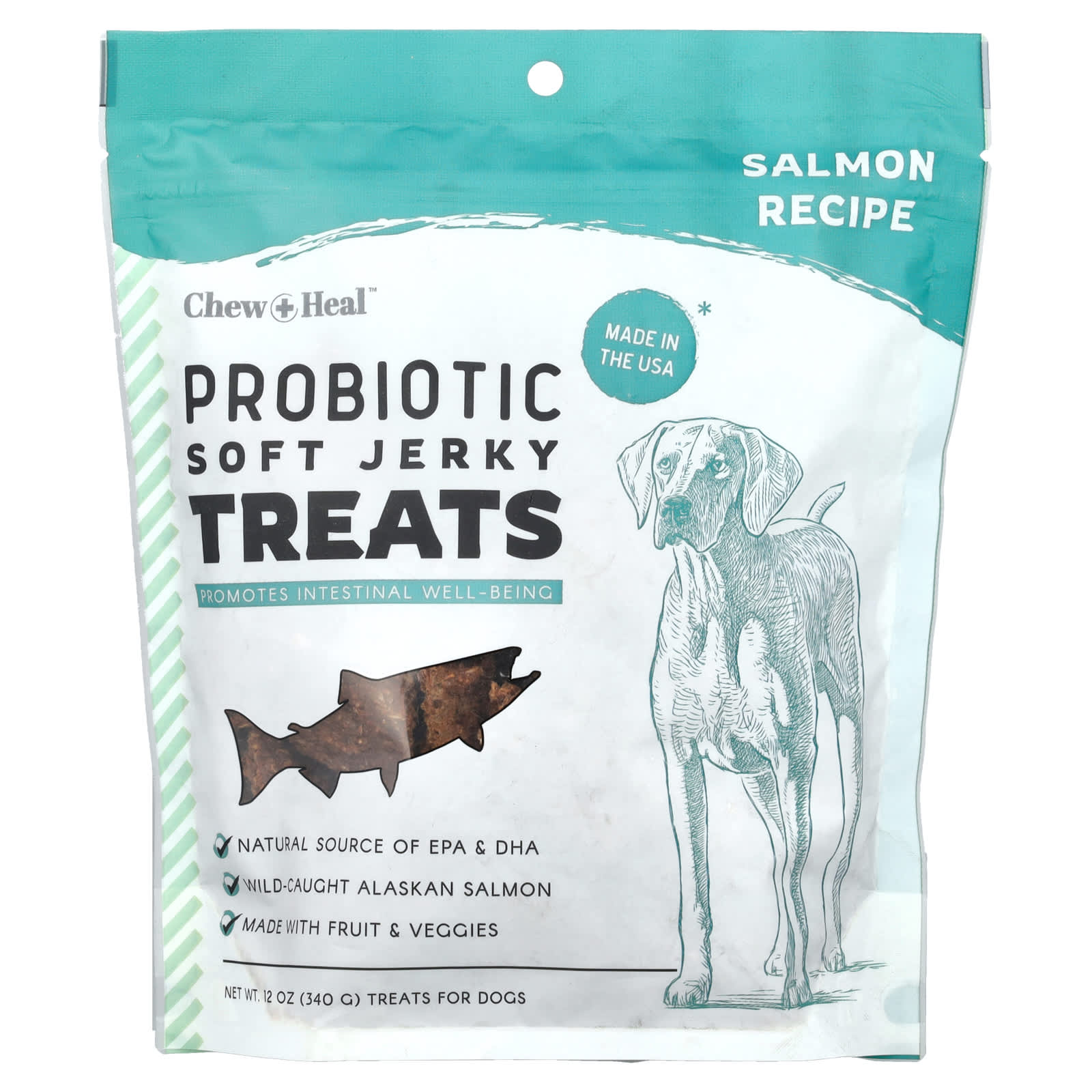 Chew + Heal, Мягкое вяленое лакомство с пробиотиком, для собак, с лососем, 340 г (12 унций)