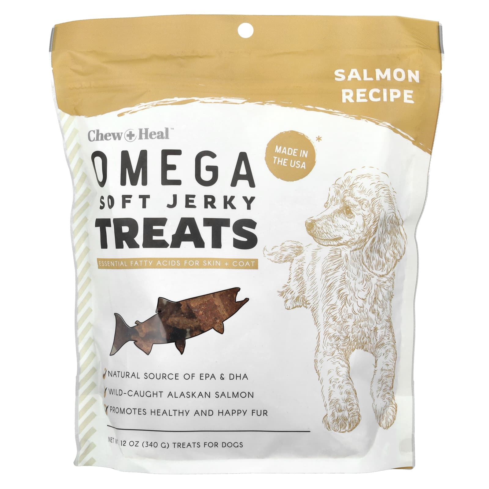 Chew + Heal, Омега мягкое вяленое лакомство, для собак, с лососем, 340 г (12 унций)