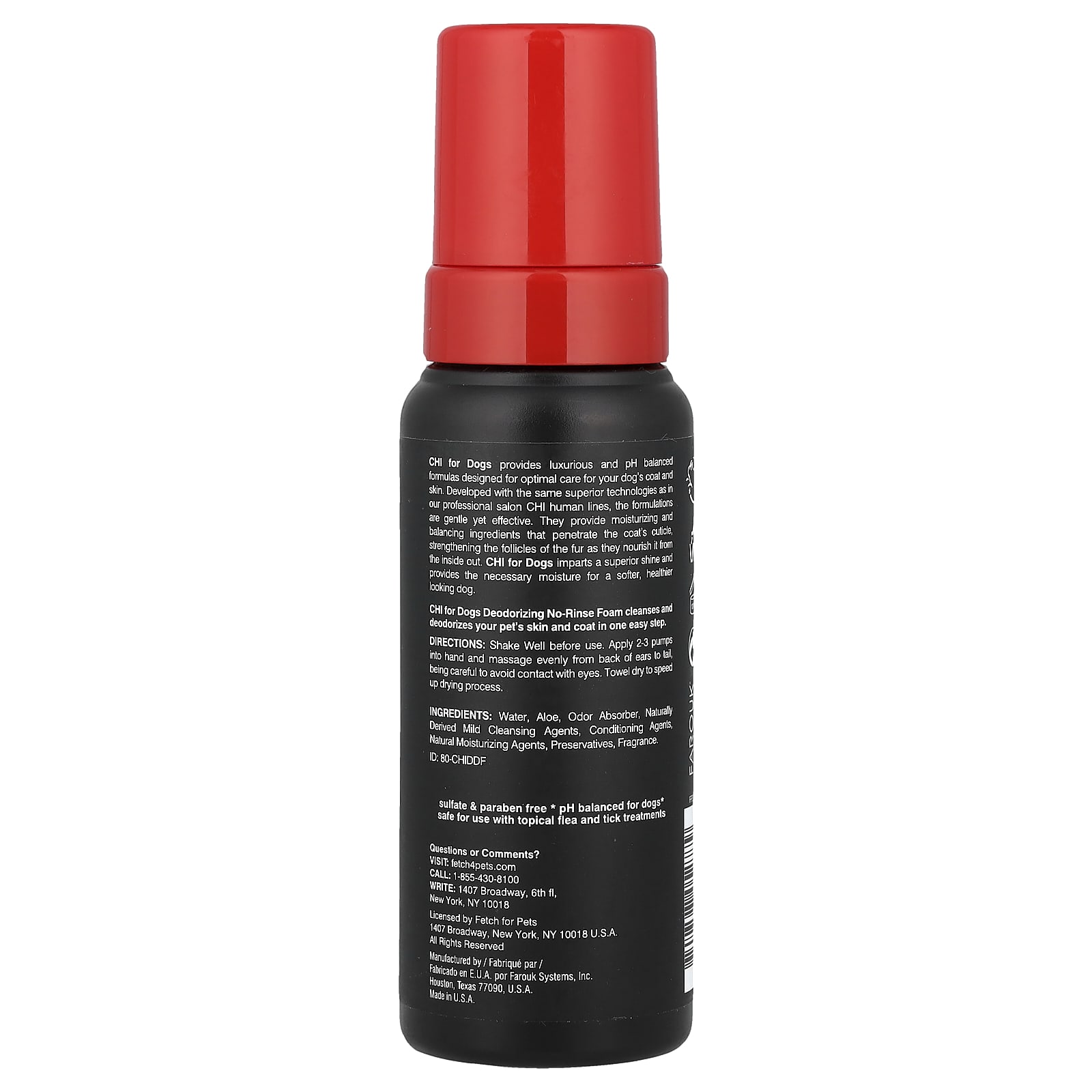 Дезодорирующая пенка для собак, не требующая смывания, CHI for Dogs очищает и дезодорирует кожу и шерсть вашего питомца одним простым действием.