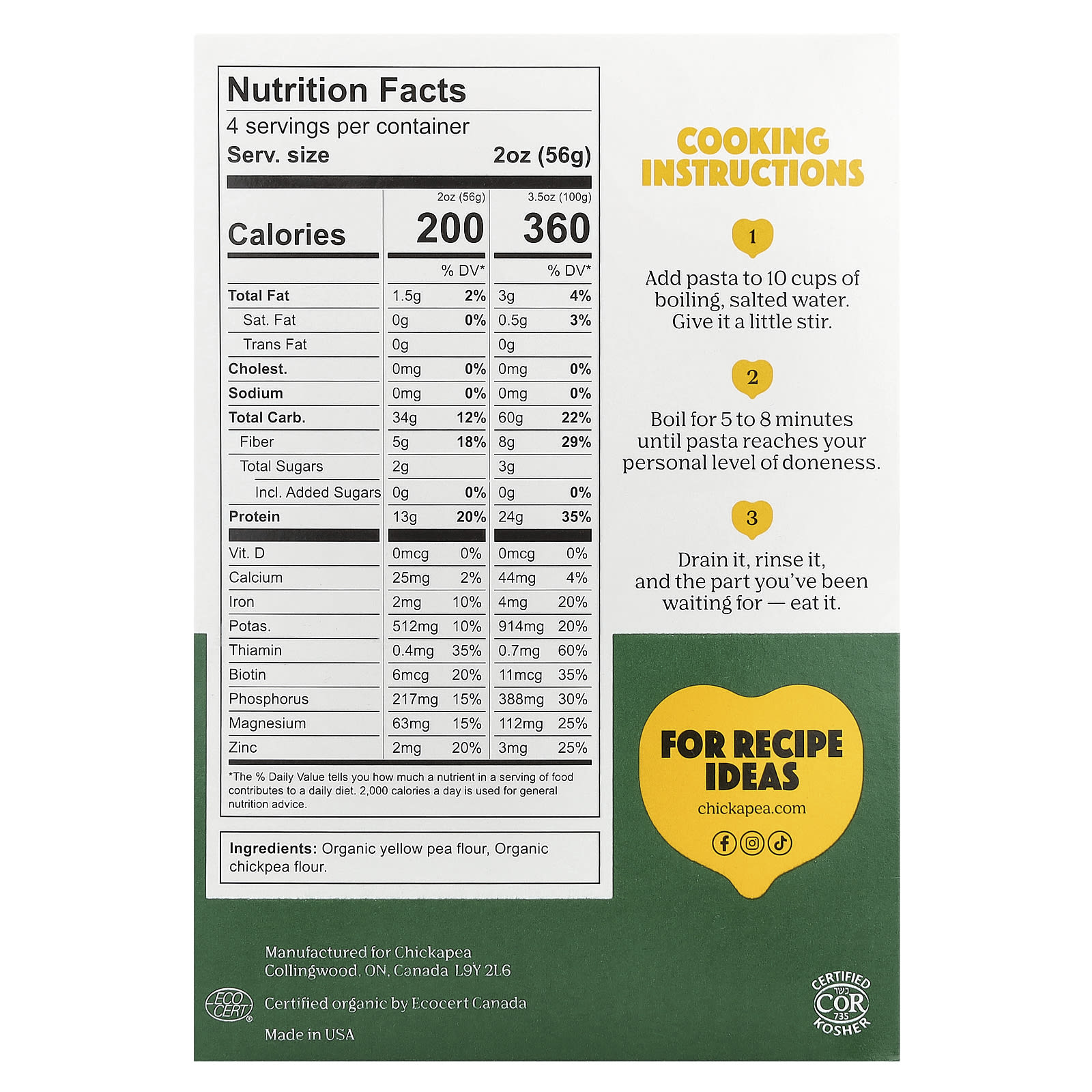 - Сделано из нута и желтого горошка