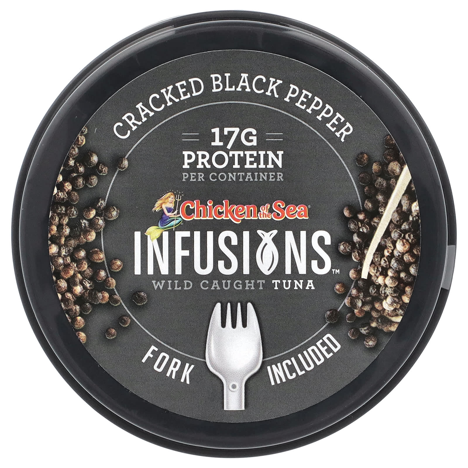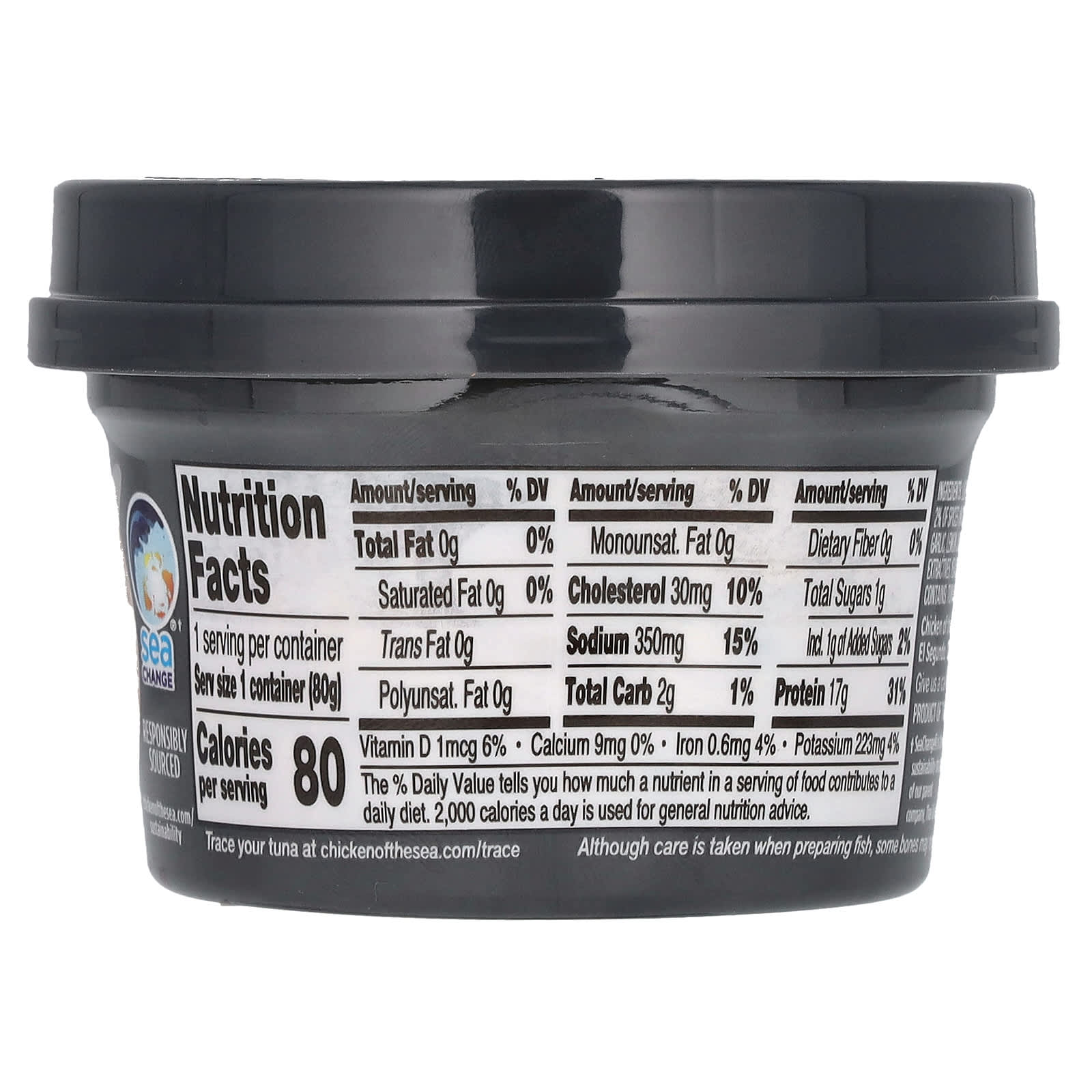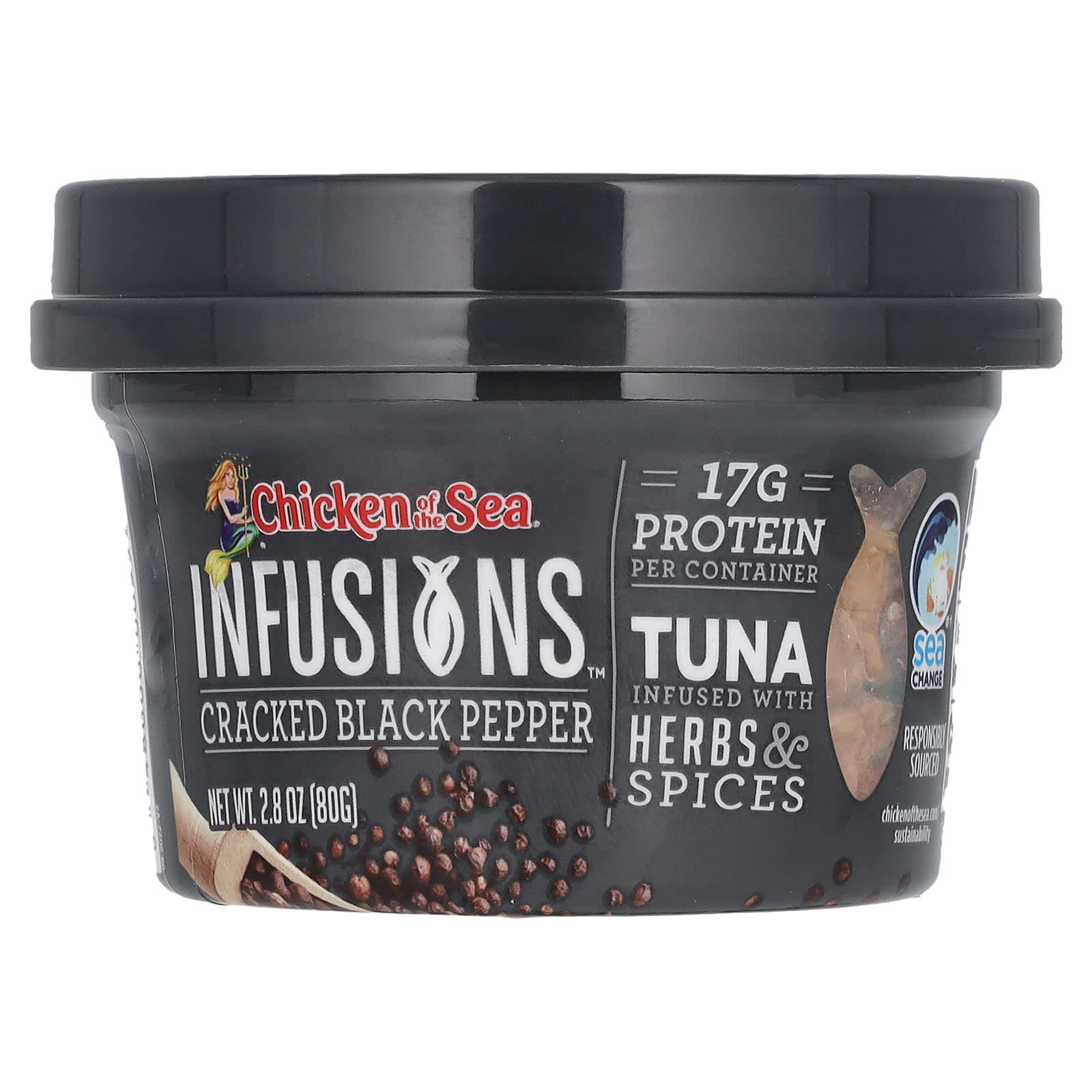 Легкий тунец, вода, лук, менее 2% специй (включая черный перец), соль, сахара, чеснок, порошок из сока лимона, натуральные ароматизаторы, экстракты специй, экстракт дрожжей, лимонная кислота, гуаровая камедь.