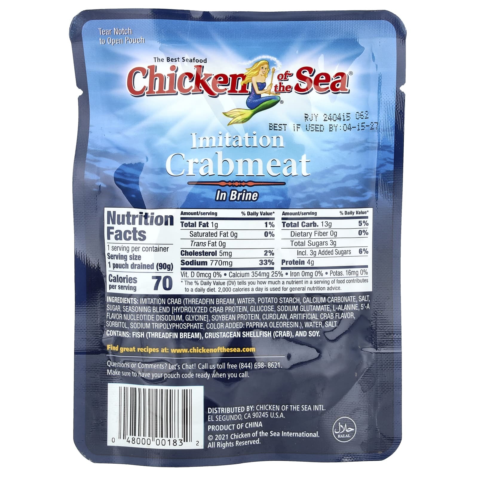 Имитация краба, вода, картофельный крахмал, карбонат кальция, соль, сахара, смесь приправ [гидролизованный крабовый белок, глюкоза, глутамат натрия, l-аланин, 5'-ароматизатор, динатрий нуклеотид, глицин], соевый белок, курдлан, искусственный крабовый ароматизатор, сорбитол, триполифосфат натрия, добавленный краситель: олеорезин паприки.), вода, соль. содержит: рыбу (лещ), ракообразные моллюски (крабы), сою.