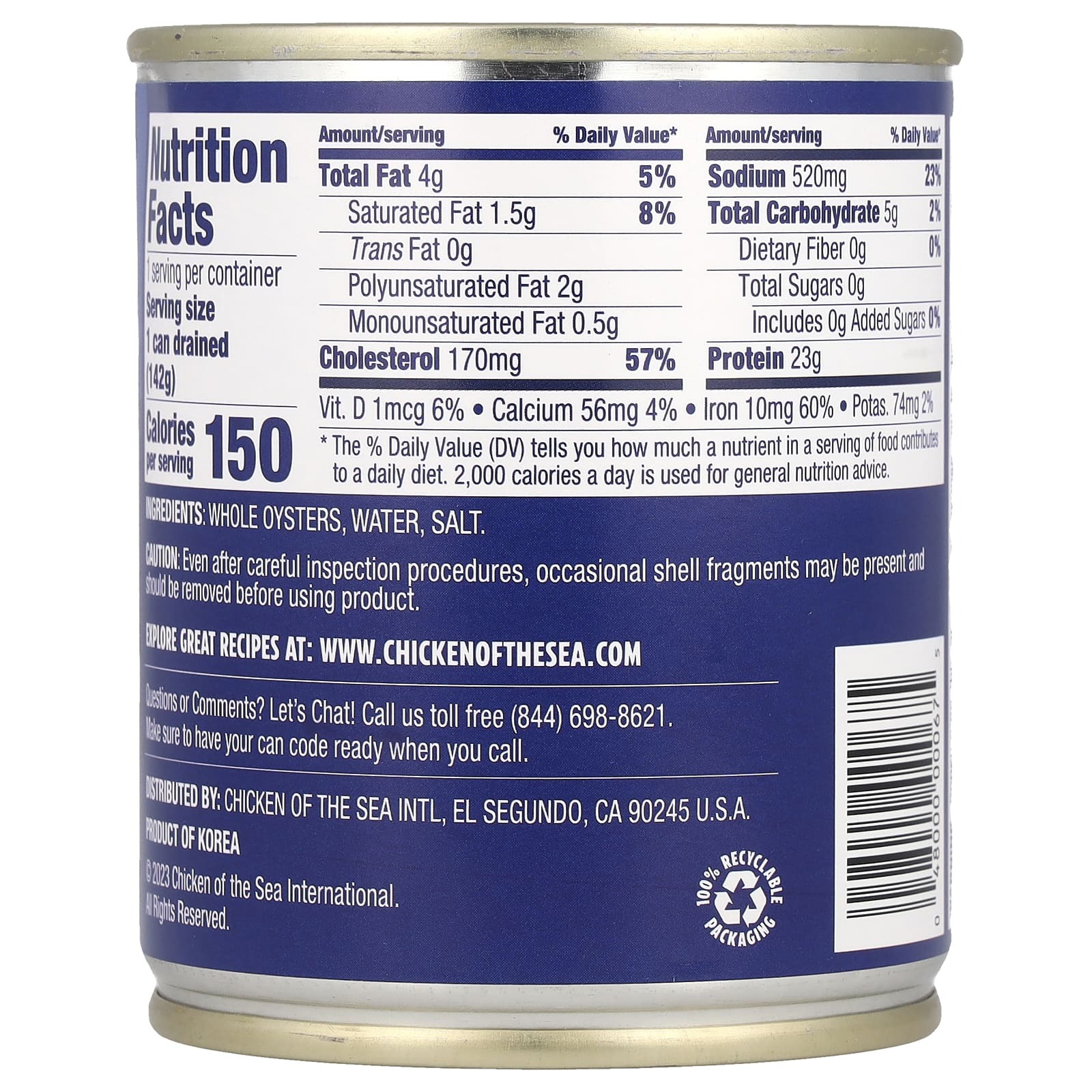 | Размер порции: 1 банка (142 г) | ||
