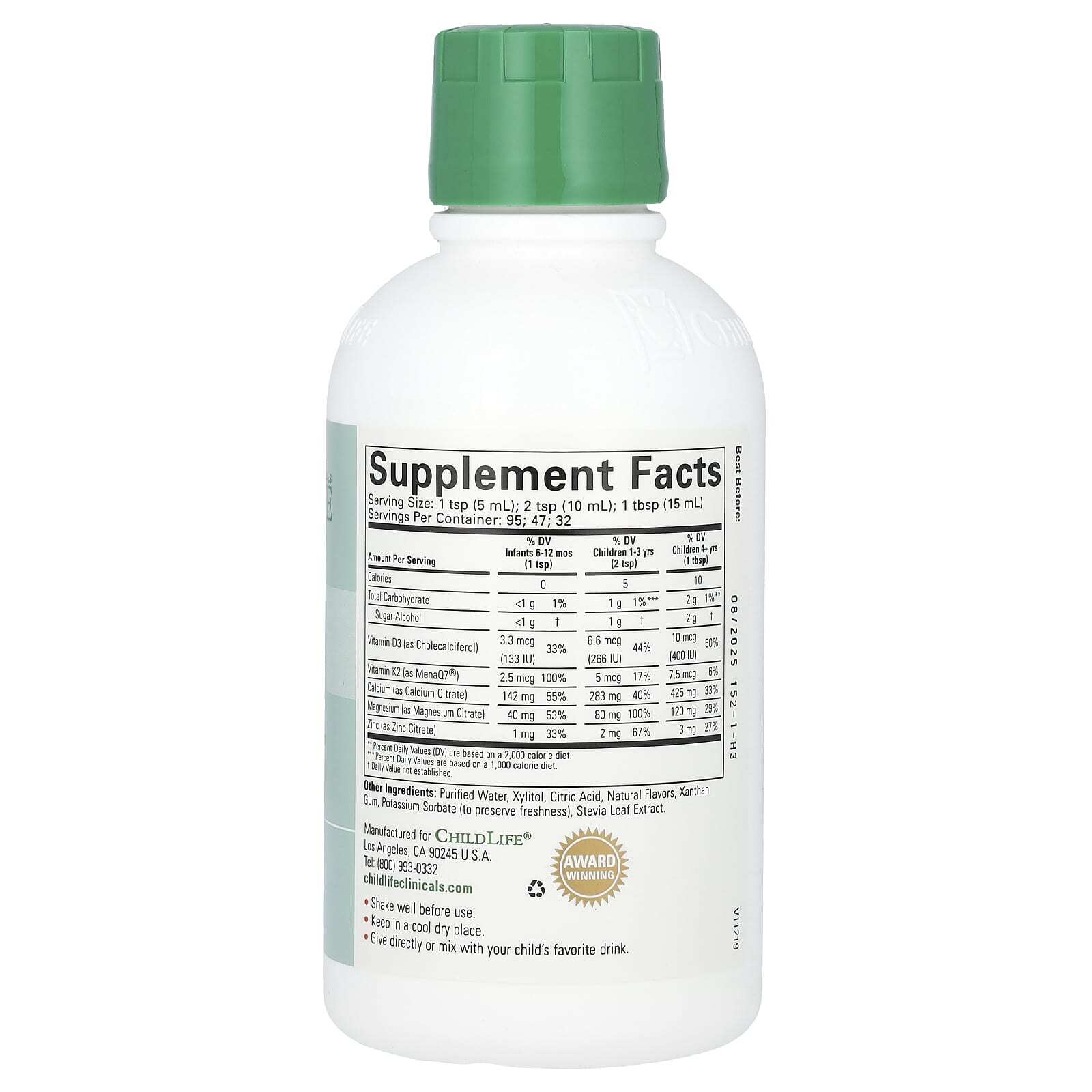 Добавка для здоровья костей от ChildLife® Clinicals содержит кальций и магний в сочетании с витамином D3 и витамином K2 в сбалансированном, хорошо усваиваемом составе с прекрасным вкусом. Это основные питательные вещества, необходимые для поддержания здорового формирования костей вашего ребенка.