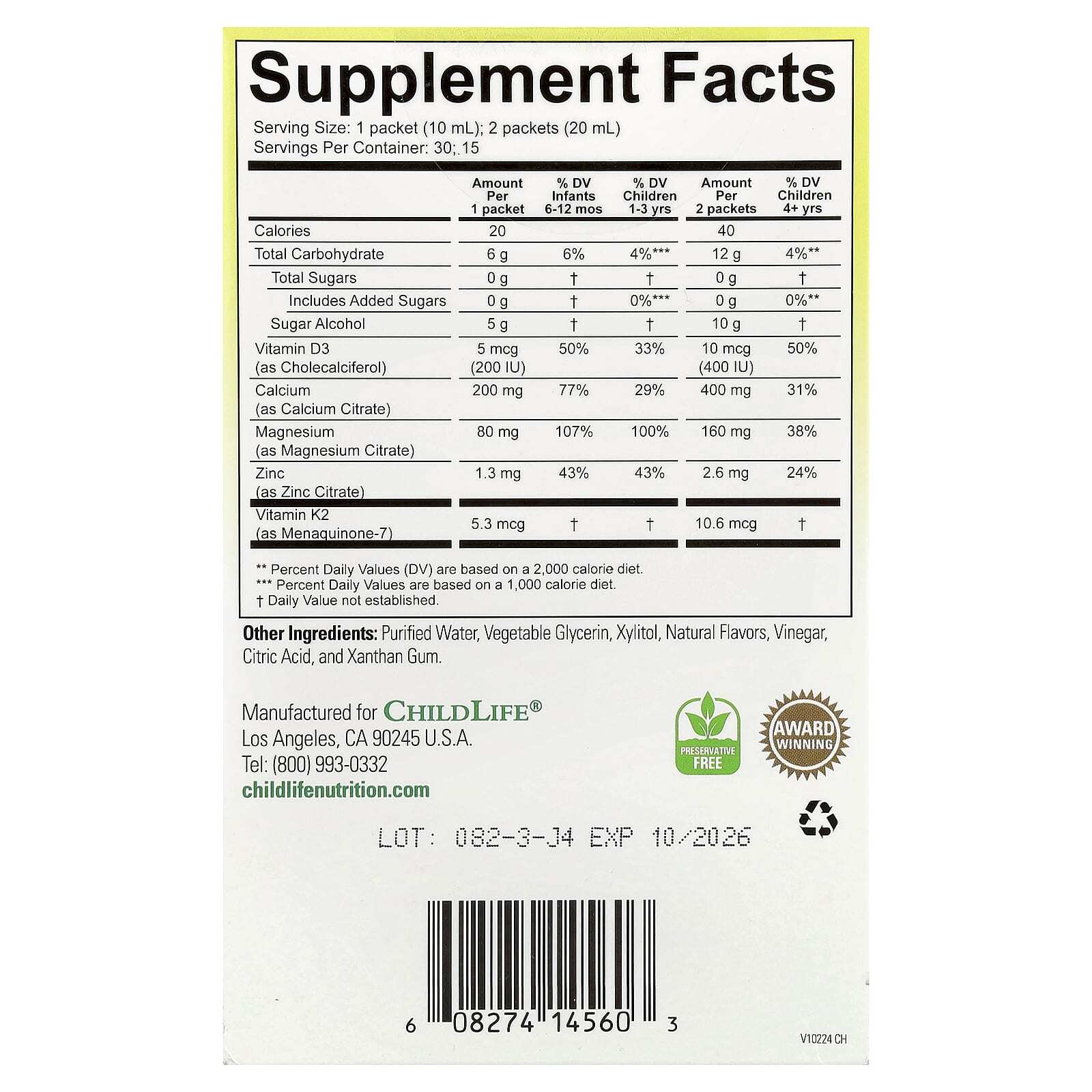 Эта добавка с натуральным вкусом, разработанная для поддержки здоровья костей вашего ребенка на критических этапах раннего роста, содержит жизненно важные питательные вещества, включая кальций, магний, цинк, витамин D3 и витамин K2.