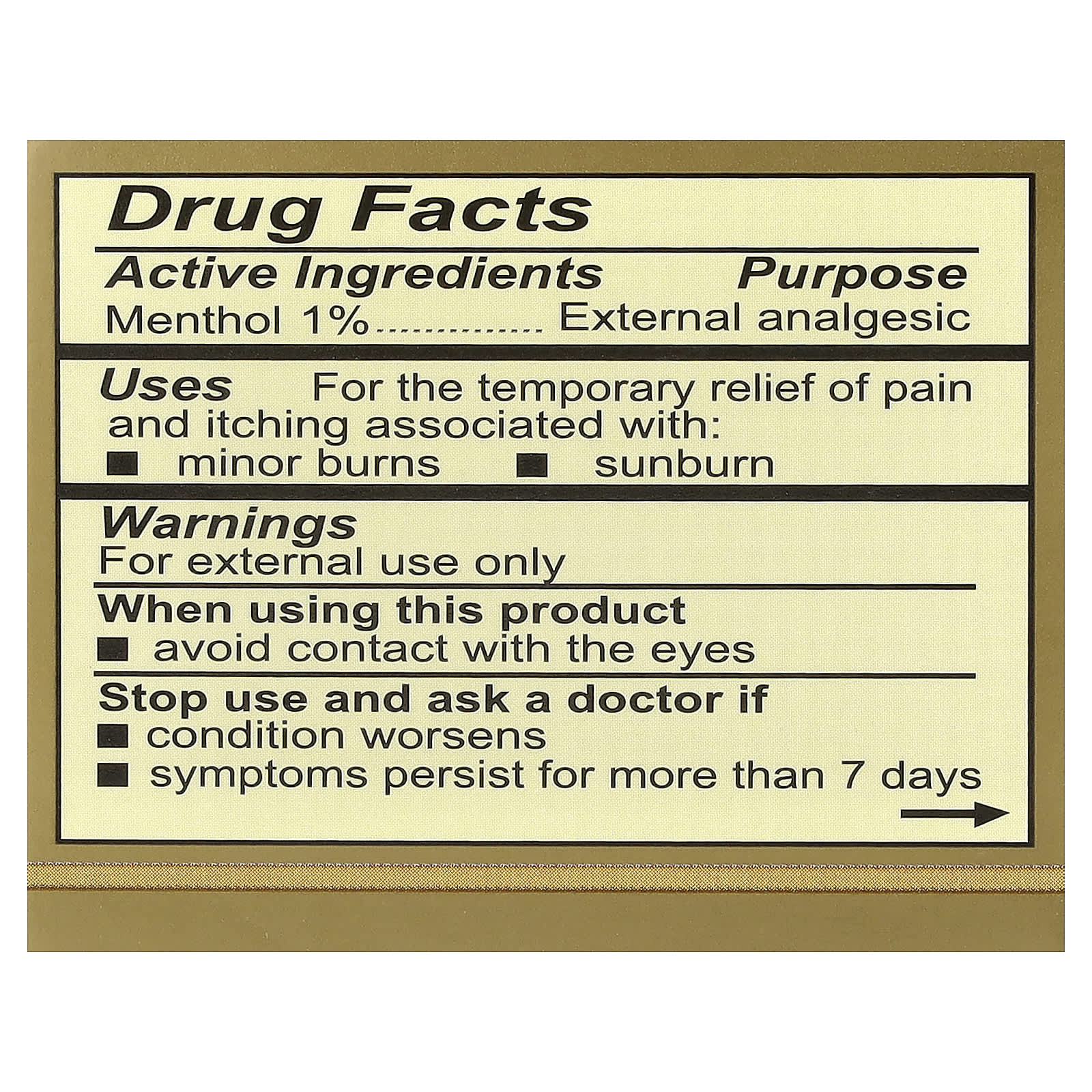 | Ментол — 1% | Наружный анальгетик |