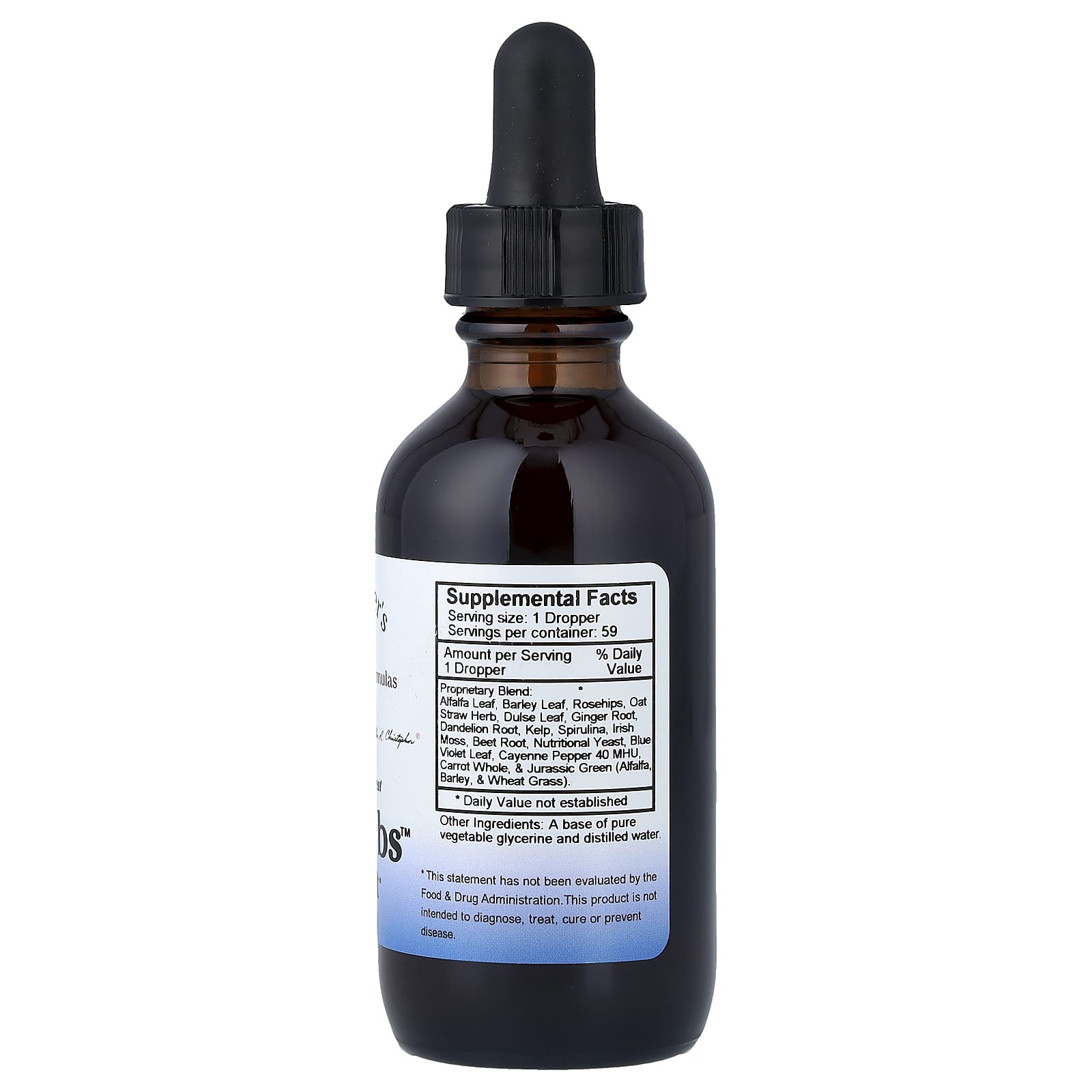 | Запатентованная смесь: Листья люцерны, листья ячменя, шиповник, трава овса, листья дульсе, корень имбиря, корень одуванчика, бурые водоросли, спирулина, ирландский мох, корнеплод свеклы, пищевые дрожжи, листья синей фиалки, кайенский перец 40 HMO, цельная морковь и зелень юрского периода (люцерна ячмень и ростки пшеницы) | 1 пипетка. | * |