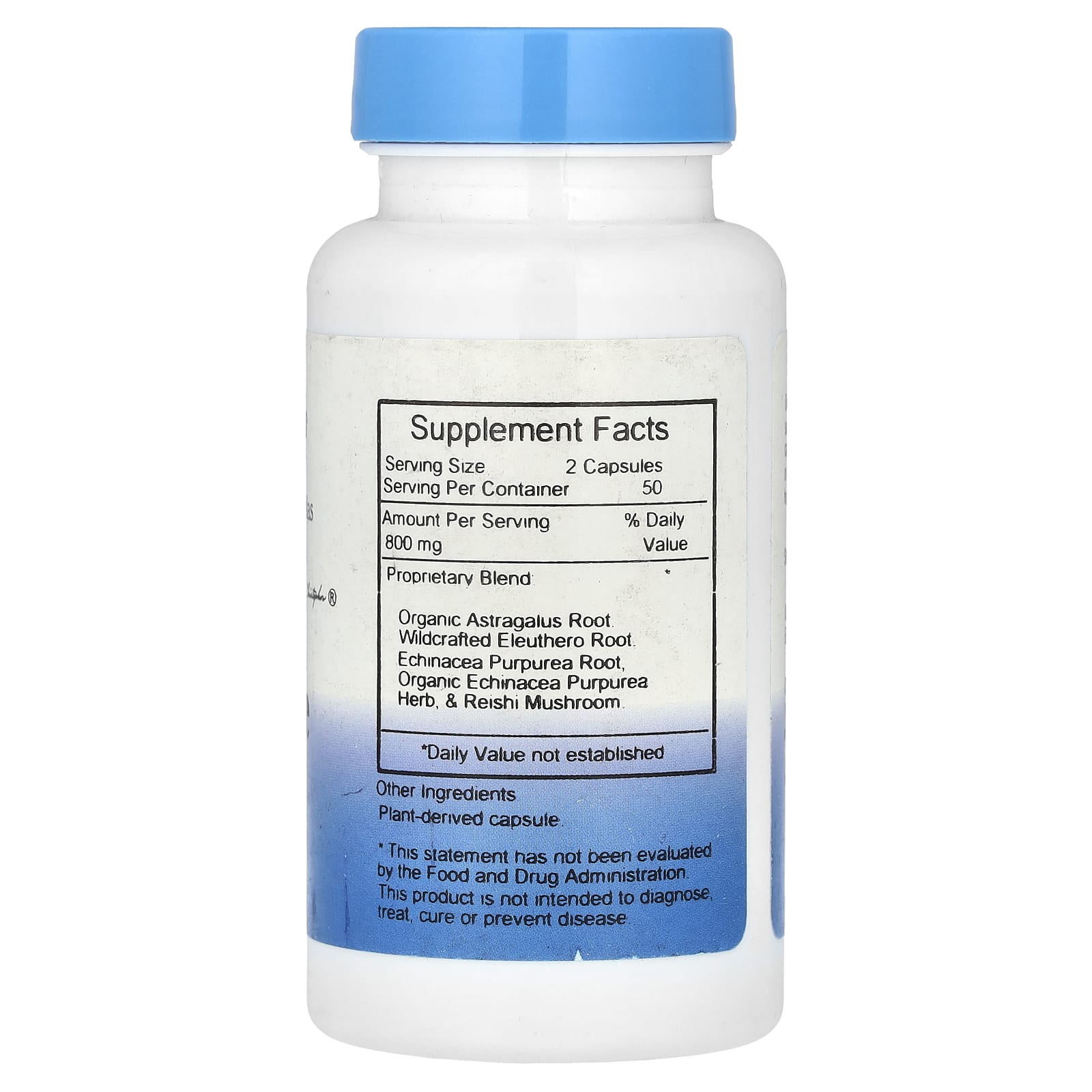 | Запатентованная смесь: Органический корень астрагала. Дикорастущий корень элеутерококка Корень эхинацеи пурпурной, трава органической эхинацеи пурпурной и гриб рейши | 800 мг | * |