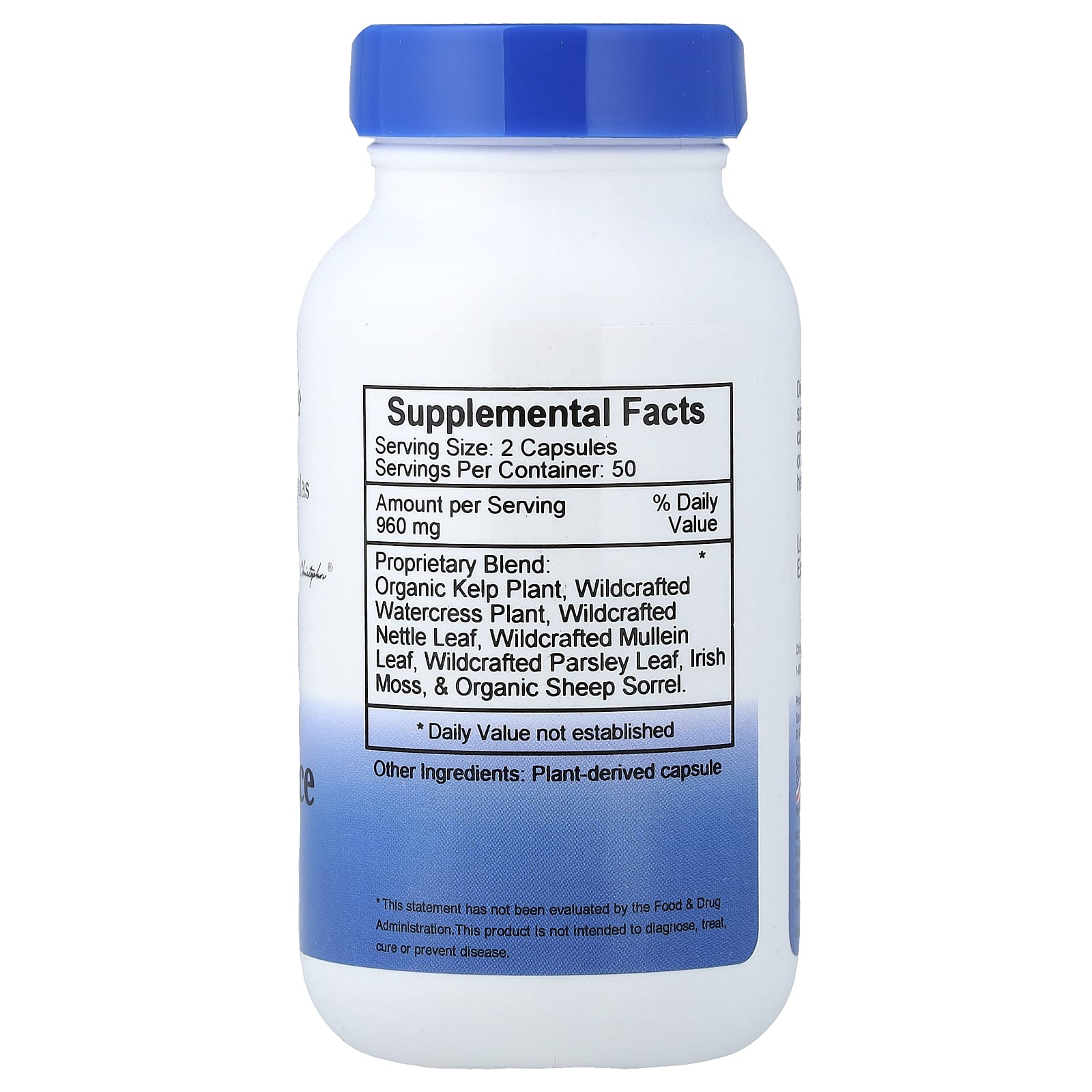 | Запатентованная смесь: Органический келп, дикорастущий жеруха, листья дикорастущей крапивы, листья дикорастущего коровяка, листья органической петрушки, дикорастущий ирландский мох и органический щавель. | 960 мг | * |