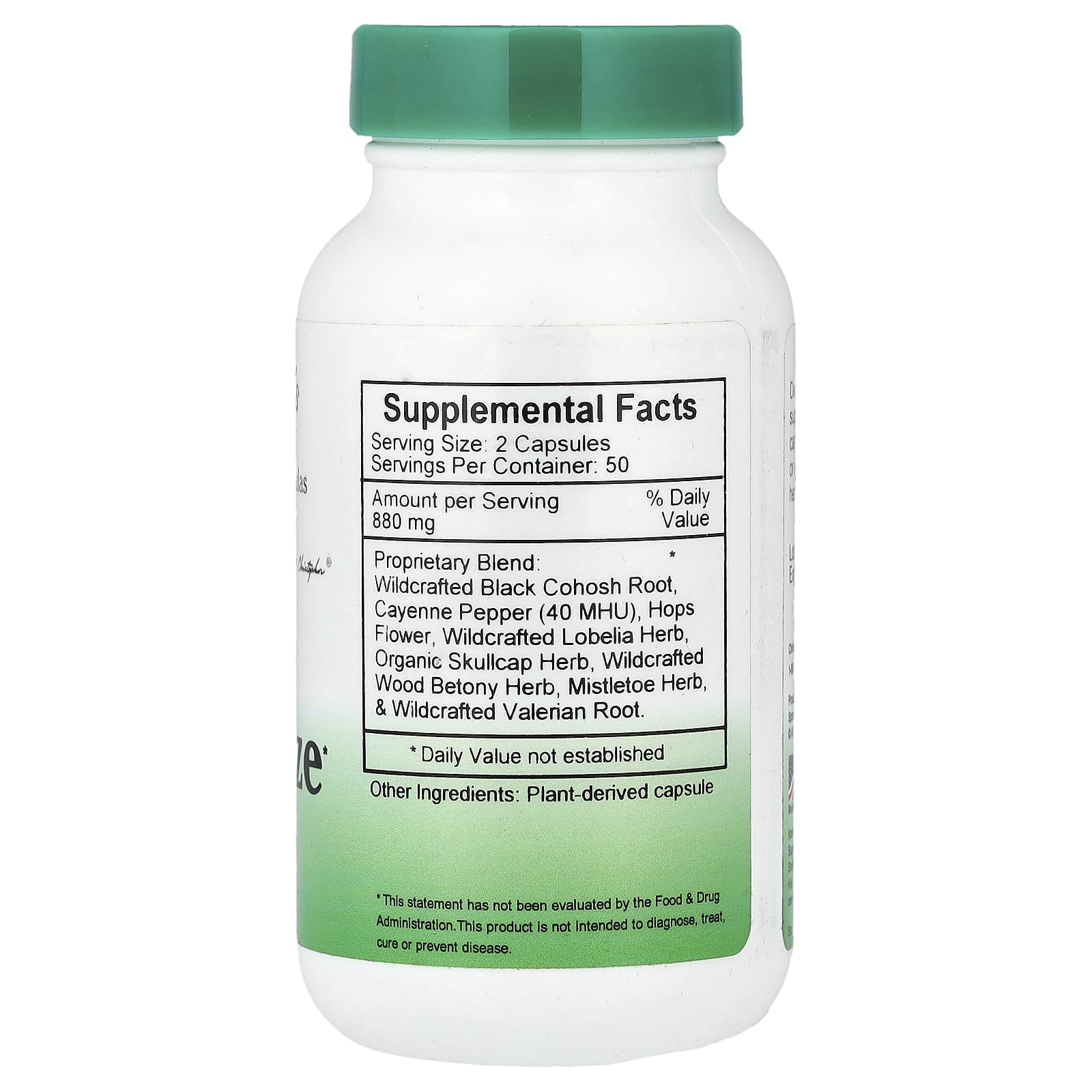 | Запатентованная смесь: корень дикорастущего воронца кистевидного, кайенский перец 40 MHU, цветки хмеля, выращенная в дикой природе лобелия, органический шлемник, выращенная в дикой природе буквица лекарственная, омела белая, корень дикорастущей валерианы. | 880 мг | * |