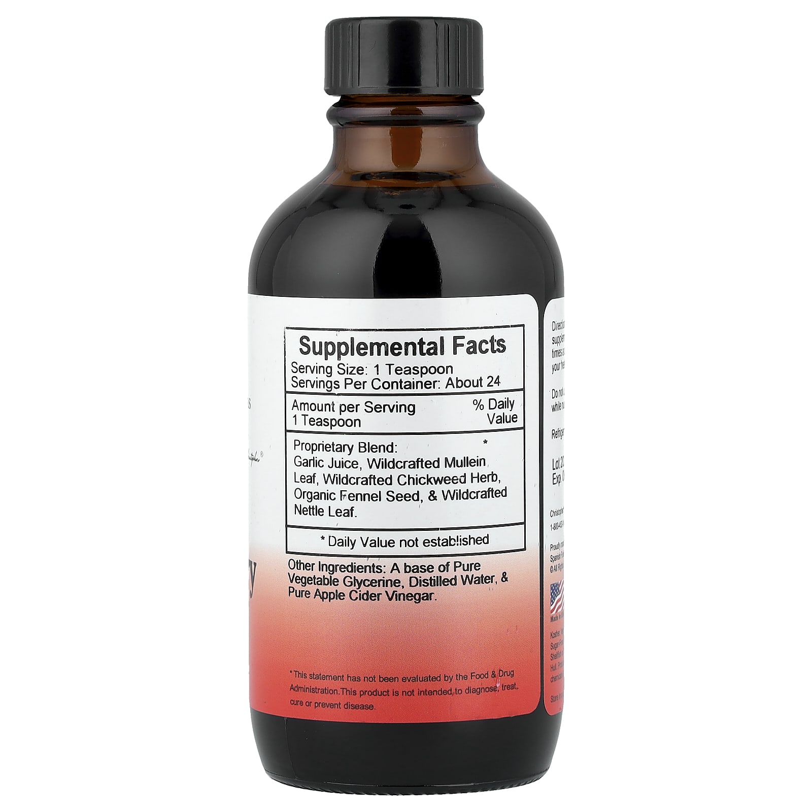 | Запатентованная смесь: Чесночный сок, листья дикорастущего коровяка, трава дикорастущей звездчатки, органические семена фенхеля и листья дикорастущей крапивы. | 1 чайная ложка | * |