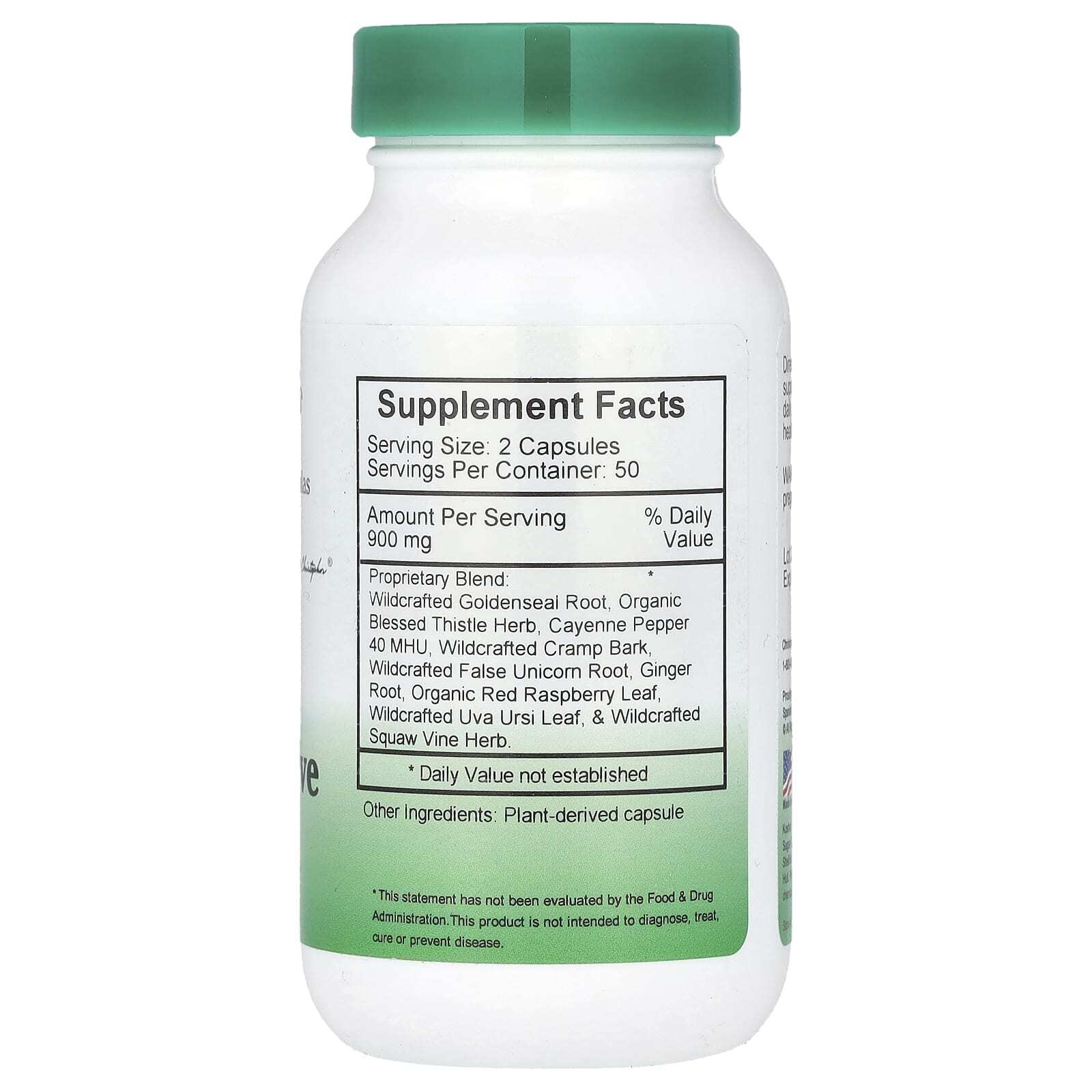 Собственная смесь: Корень обыкновенного золота Goldenseal, Органический благословленный трава чертополоха, Cayenne Pepper (40MHU), Кожаный судорога Wildcrafted, Лосовый корневой корень из органического корня, Органический корень имбиря, Красный лист малины Wildcrafted, Органический лист Uva Ursi и кустарник из виноградника Vine Herb. | 900 мг | * |