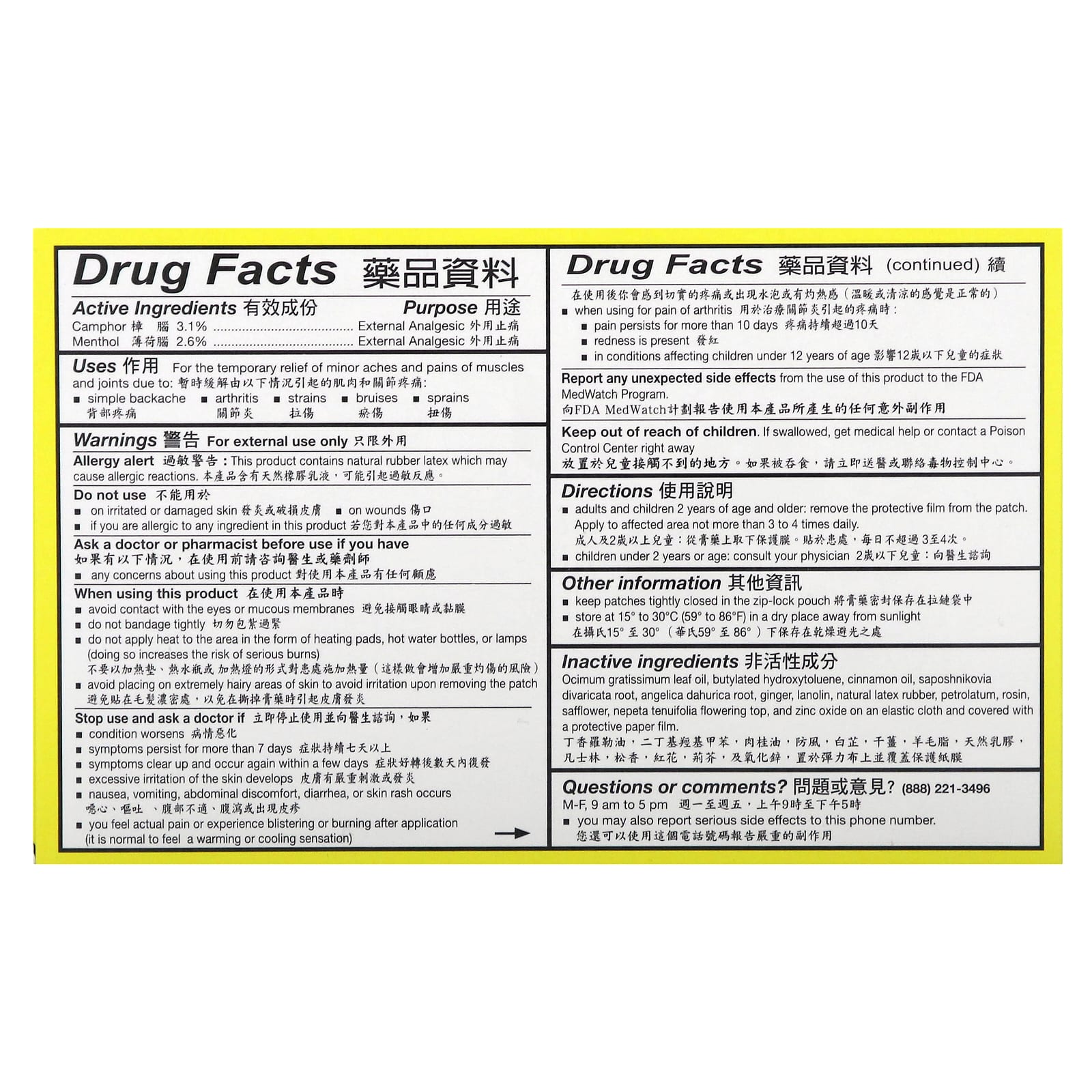 | масло из листьев оцимума (Ocimum gratissimum), бутилированный гидрокситолуол, масло корицы, корень сапошниковы (Saposhnikia divaricata), корень дудника даурского (Angelica dahurica), имбирь, ланолин, натуральный латексный каучук, вазелин, канифоль, сафлор, цветущие верхушки непеты узколистной и оксид цинка, на эластичной ткани, защищенной защитным веществом. бумажная пленка. | |