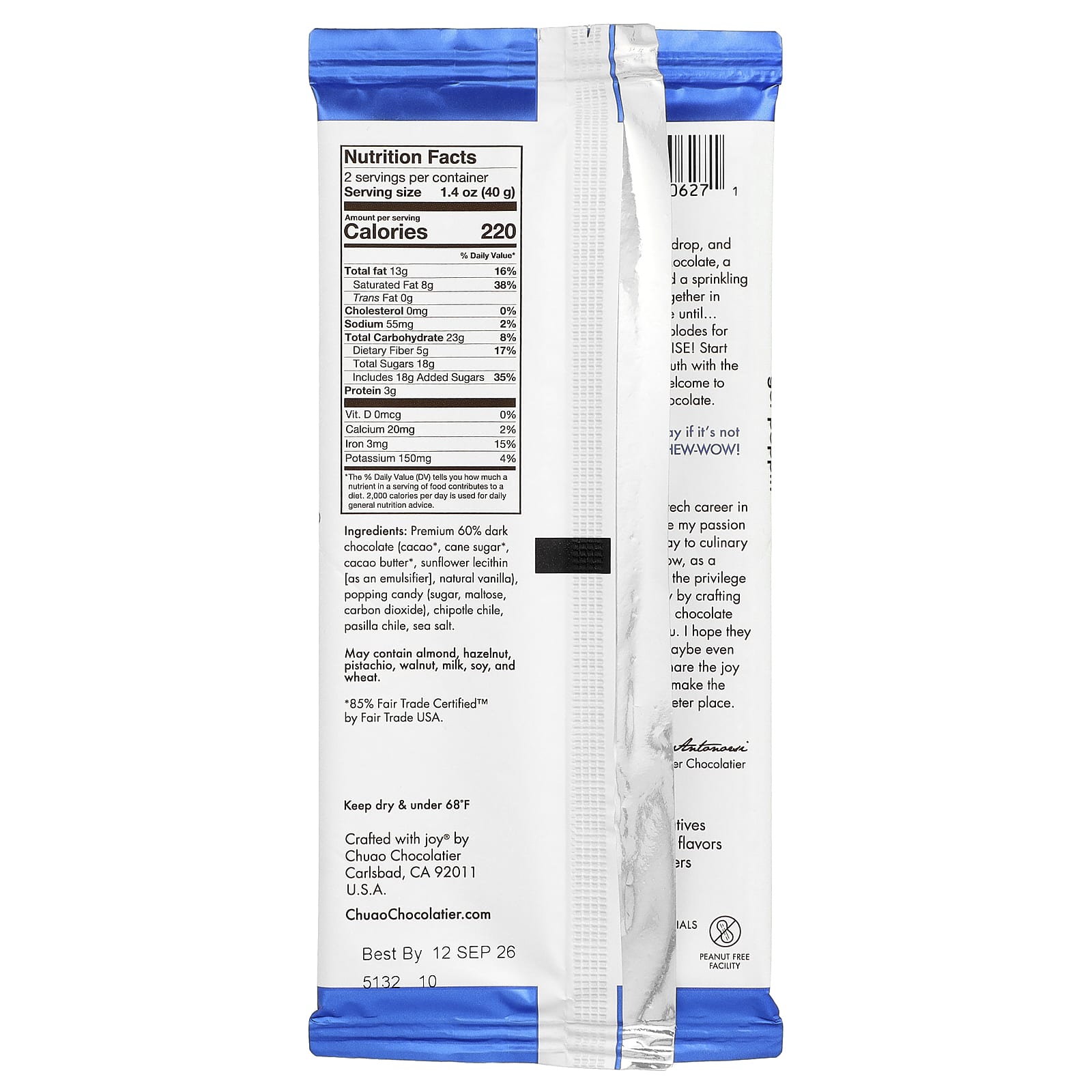 Приготовьтесь бросить курить и смаковать вкус. Шелковистый темный шоколад, щепотка чипотле и щепотка морской соли гармонично сочетаются, пока... конфета не взорвется, обеспечивая непревзойденный Сюрприз! Начните вечеринку с батончиком Firecrecker. Добро пожаловать на дикую сторону шоколада.