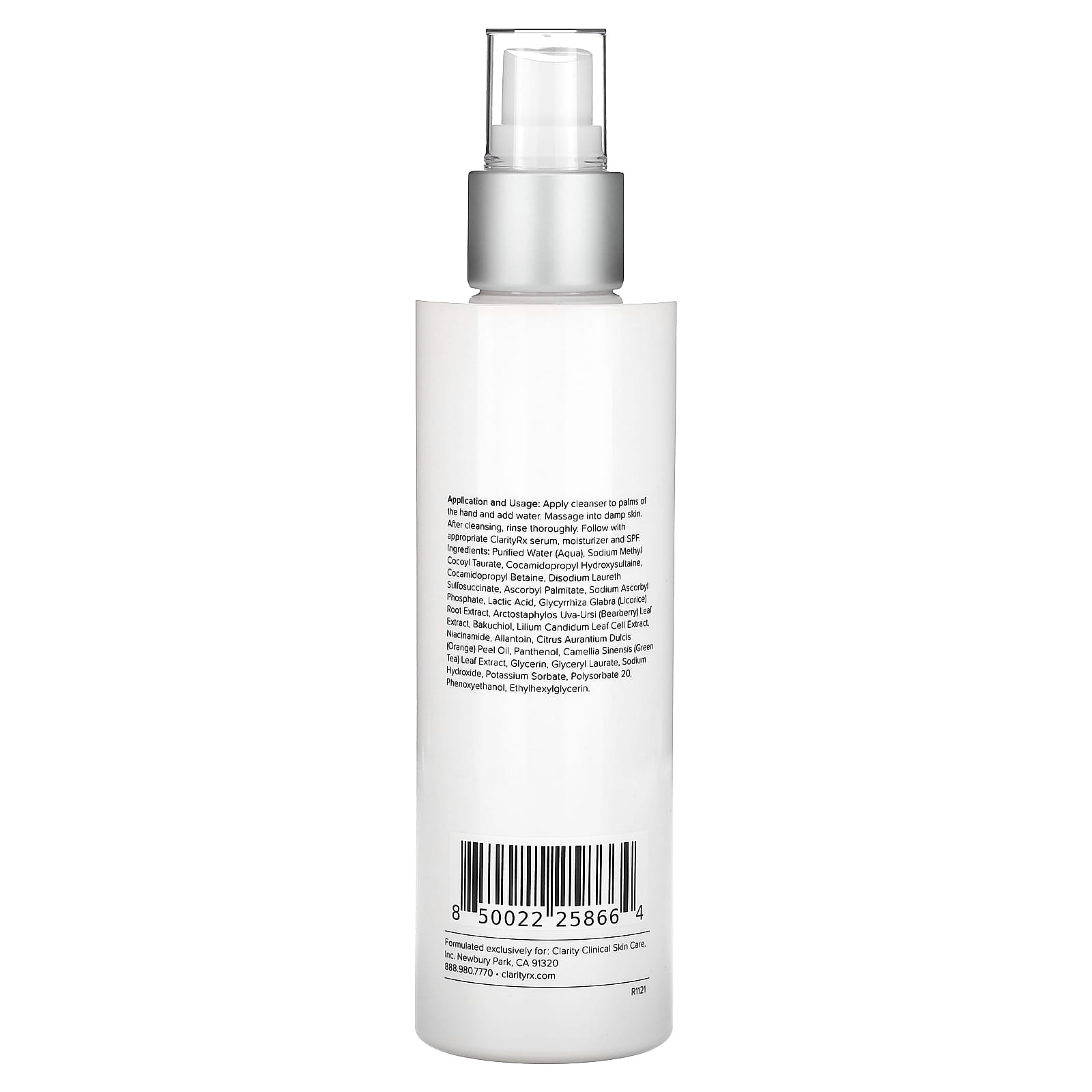 Заявка и использование. Нанесите очищающее средство на ладонях и добавьте воды. Массажными движениями нанесите на влажную кожу. После очищения тщательно смойте. Затем нанесите подходящую сыворотку ClarityRx, увлажняющий крем и продукт с SPF.