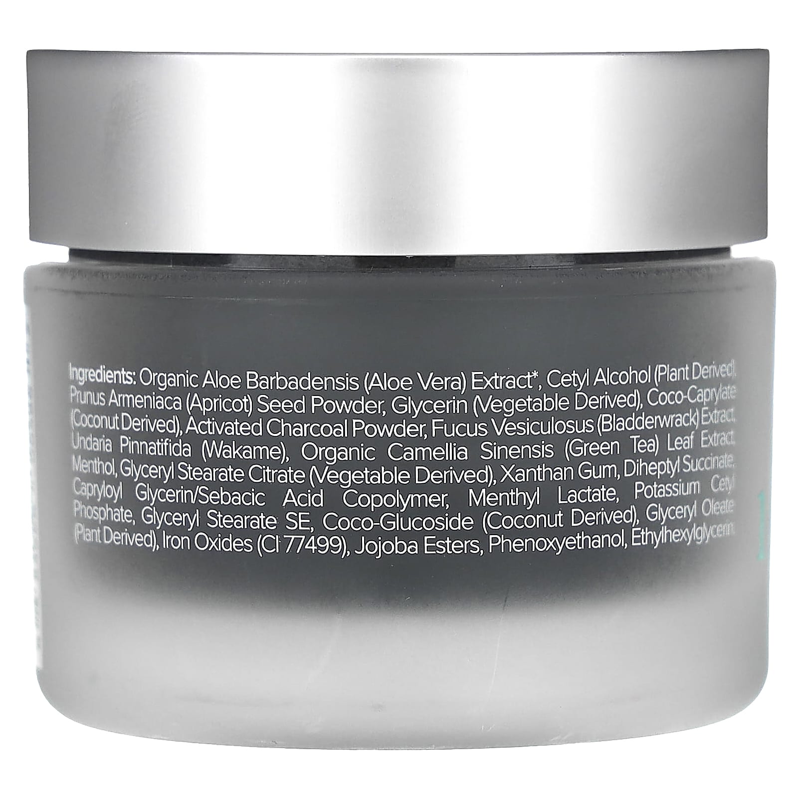 экстракт органического алоэ вера (Aloe barbadensis)*, цетиловый спирт (растительного происхождения), порошок из косточек абрикоса (Prunus armeniaca), глицерин (растительного происхождения), кококаприлат, полученный из кокоса), порошок из активированного древесного угля, экстракт фукуса (Fucus vesiculosus), ундария перистая (вакаме), органический экстракт листьев зеленого чая (Camellia sinensis)*, ментол, глицерил стеарат цитрат (растительного происхождения), ксантановая камедь, дигептил сукцинат, каприлоил глицерин/сополимер себациновой кислоты, ментил лактат, цетил фосфат калия, глицерил стеарат эмульгирующий, кокоглюкозид (из кокоса), глицерилолеат (растительного происхождения), оксиды железа (CI 77499), эфиры жожоба, феноксиэтанол, этилгексилглицерин.
