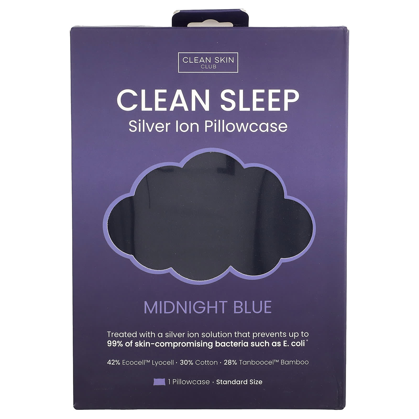 Clean Skin Club, Clean Sleep, наволочка с ионами серебра, темно-синий, 1 шт.