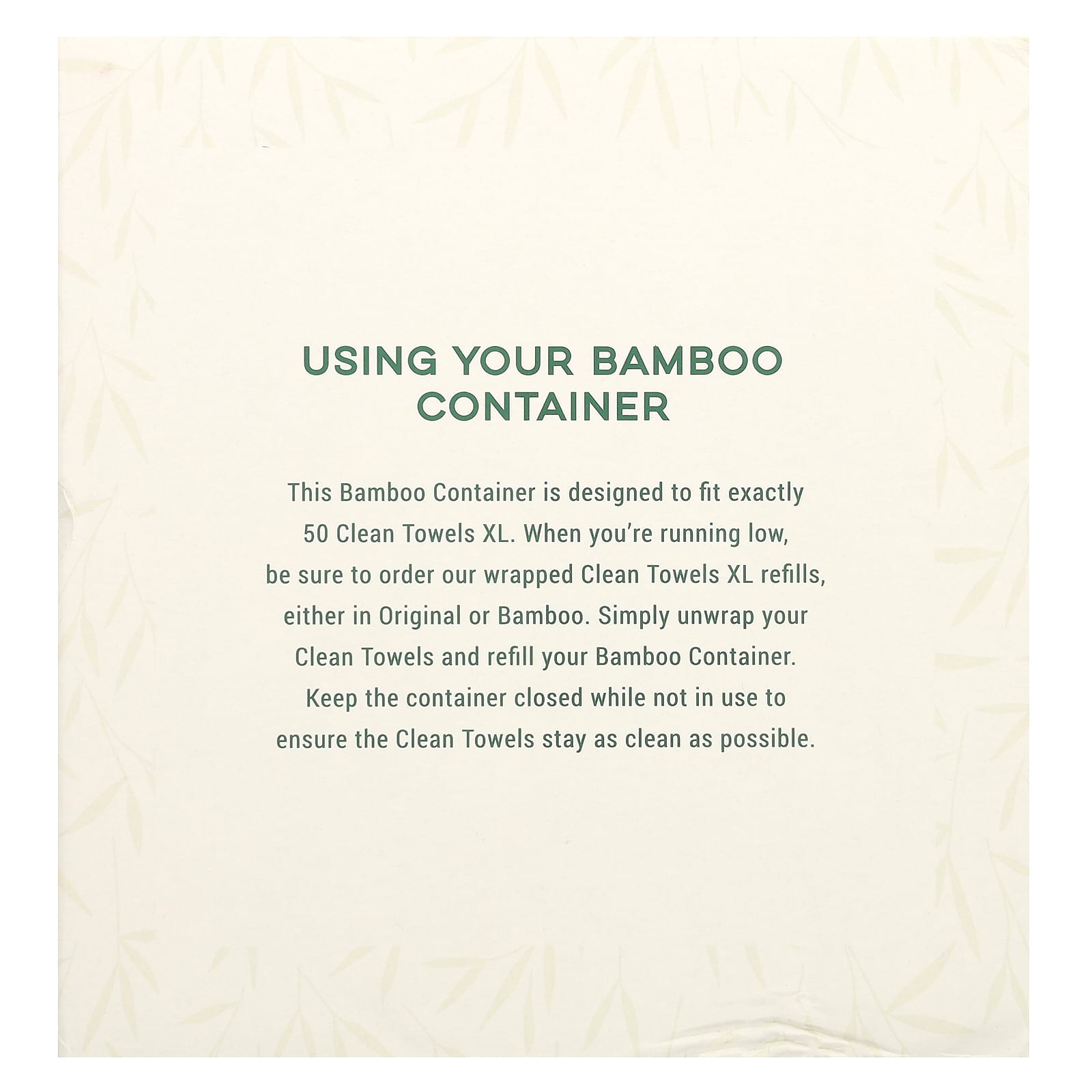 Этот бамбуковый контейнер вмещает ровно 50 чистых полотенец размера XL. Если средства будут заканчиваться, обязательно закажите наши упакованные повторно салфетки Clean Towes XL (стандартного размера или бамбукового). Просто снимите упаковку чистых полотенец и наполните ими бамбуковый контейнер. Храните упаковку закрытой, когда вы не используете ее, чтобы обеспечить чистоту чистых полотенец.