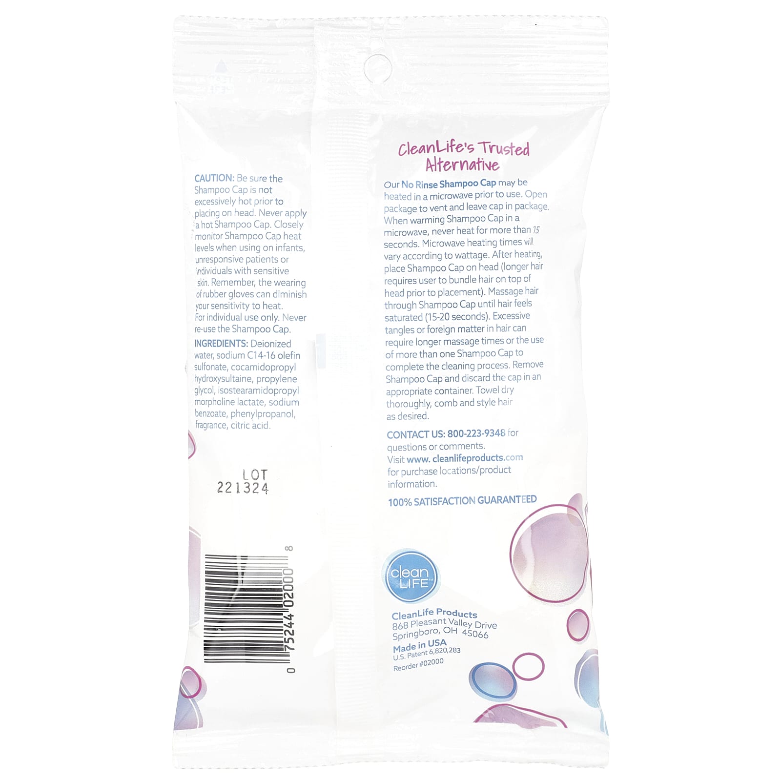 Нашу шапочку для шампуня, не требующую смывания, можно нагреть в микроволновой печи перед использованием. Откройте упаковку для вентиляции и оставьте колпачок в упаковке. При нагревании капсулы с шампунем в микроволновой печи не используйте более 15 секунд. Время нагрева в микроволновой печи зависит от мощности. После нагревания наденьте шапочку для шампуня на голову (для более длинных волос необходимо собирать волосы на макушке перед укладкой). Массажными движениями распределите волосы через шапочку для шампуня, пока они не пропитаются (15–20 секунд). Из-за спутанных волос или посторонних веществ в волосах может потребоваться более длительное время массажа или использование нескольких капсул для завершения очищения. Снимите шапочку с шампуня и выбросьте ее в подходящую емкость. Тщательно вытрите полотенцем, расчешите и уложите волосы по желанию.