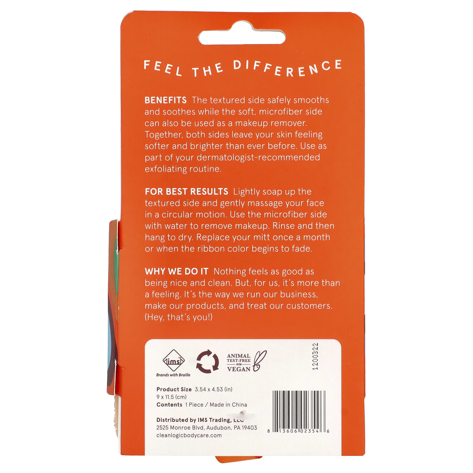 Рекомендация для достижения оптимальных результатов: Слегка намылите текстурированную сторону и аккуратно помассируйте лицо круговыми движениями. Используйте поверхность из микрофибры с водой для снятия макияжа. Промойте и повесьте сушиться. Меняйте варежку раз в месяц или по мере того, как цвет ленты начинает тускнеть.