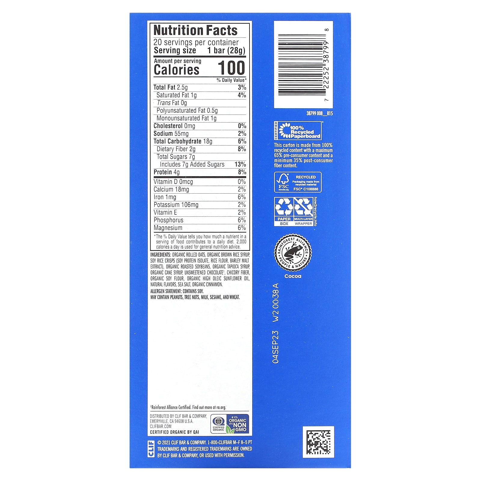 Органическая плющеная овсянка, сироп из органического коричневого риса, соевые рисовые чипсы (изолят соевого белка, рисовая мука, экстракт ячменного солода), органические жареные соевые бобы, органический тапиоковый сироп, органический тростниковый сироп, неподслащенный шоколад ', клетчатка цикория, органическая соевая мука, органическое высокоолеиновое подсолнечное масло, натуральные ароматизаторы, морская соль, органическая корица.