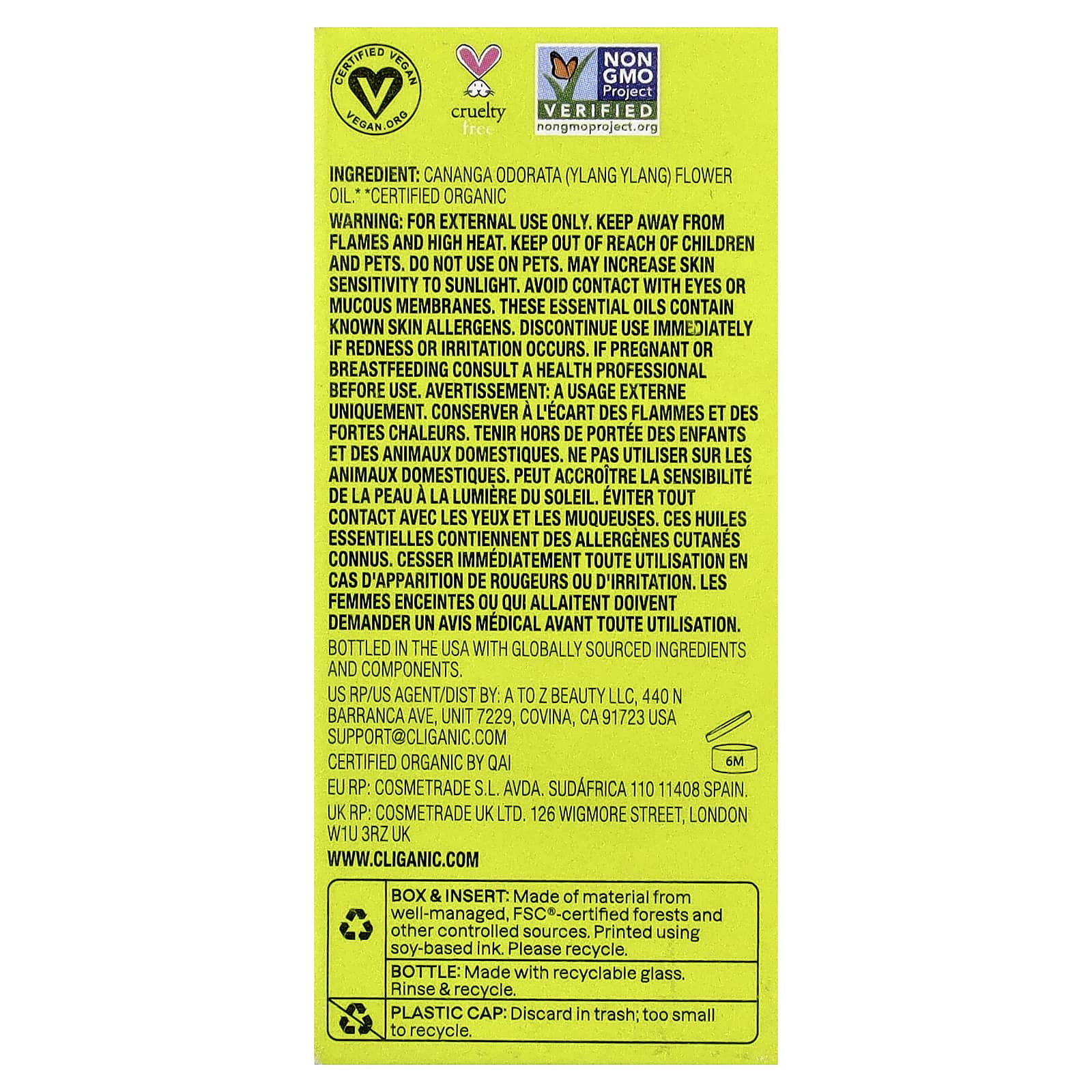 Только для наружного применения. Избегать воздействия высоких температур и огня. Хранить в месте, недоступном для детей и домашних животных. Не использовать на домашних животных. Может повысить чувствительность кожи к солнечному свету. Избегать попадания в глаза и на слизистые оболочки. Используемые эфирные масла содержат известные кожные аллергены. Необходимо немедленно прекратить использование при возникновении покраснения или раздражения. Перед применением во время беременности или кормления грудью следует проконсультироваться с врачом.