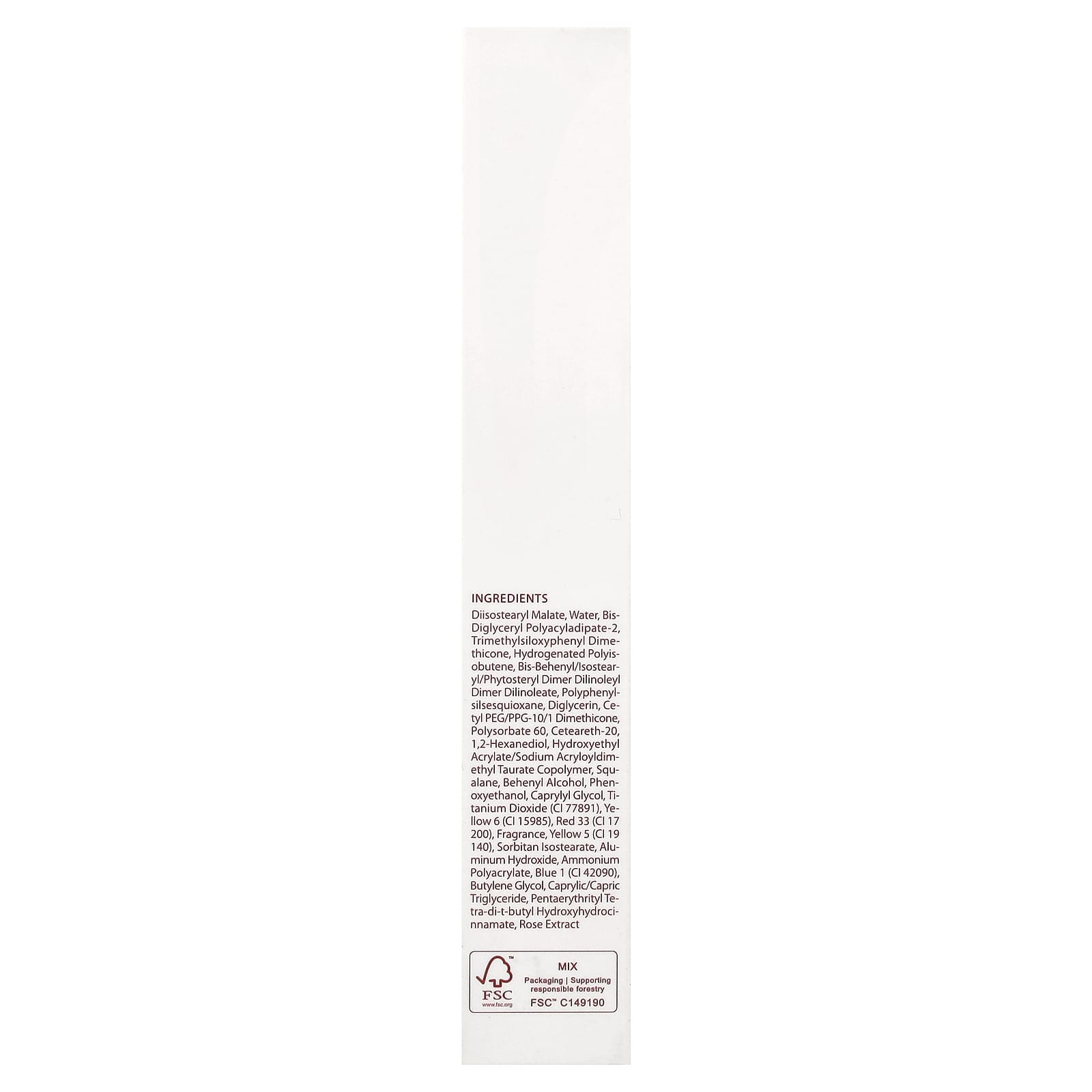 Диизостеарил малат, вода, бис-диглицерил полиациладипат-2, триметилсилоксифенил диметикон, гидрогенизированный полиизобутен, бис-бегенил/изостеарил/фитостерил димер дилинолеил димер дилинолеат, полифенилсилсесквиоксан, диглицерин, цетил ПЭГ/ППГ-10/1 диметикон, полисорбат 60, цетеарет-20,1,2-гександиол, гидроксиэтил акрилат/натрия акрилоилдиметилтаурата сополимер, сквалан, бегениловый спирт, феноксиэтанол, каприлилгликоль, диоксид титана (CI 77891), краситель желтый 6 (CI 15985), краситель красный 33 (CI 17200), отдушка, краситель жёлтый 5 (CI 19140), сорбитан изостеарат, гидроксид алюминия, полиакрилат аммония, краситель синий 1 (CI 42090), бутиленгликоль, каприловый/каприновый триглицерид, пентаэритритил тетра-ди-трет-бутил гидроксигидроциннамат, экстракт розы.