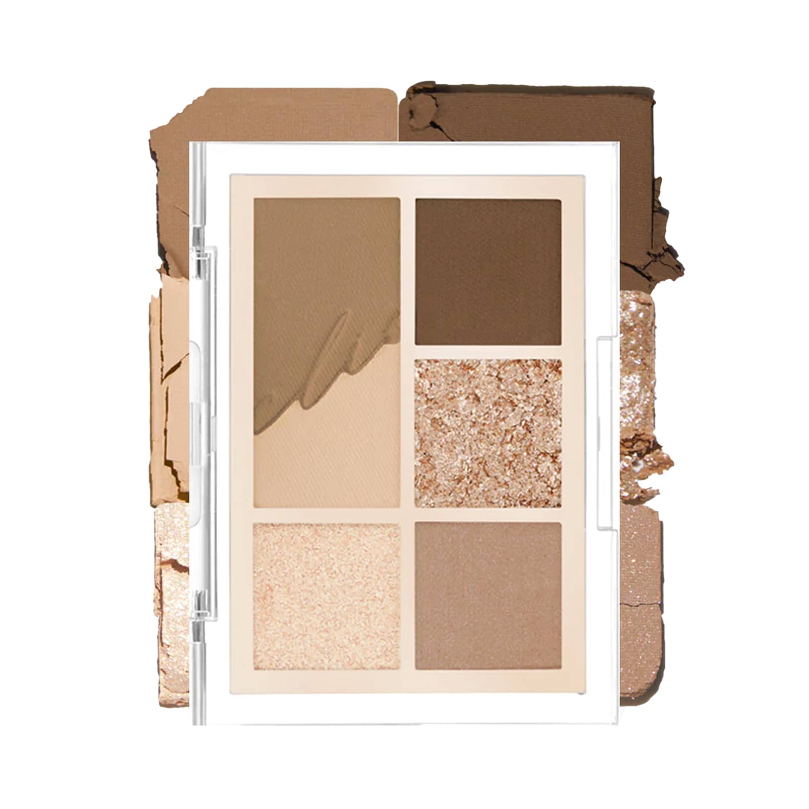 Миниатюрная палитра теней для век с нежным прозрачным блеском.