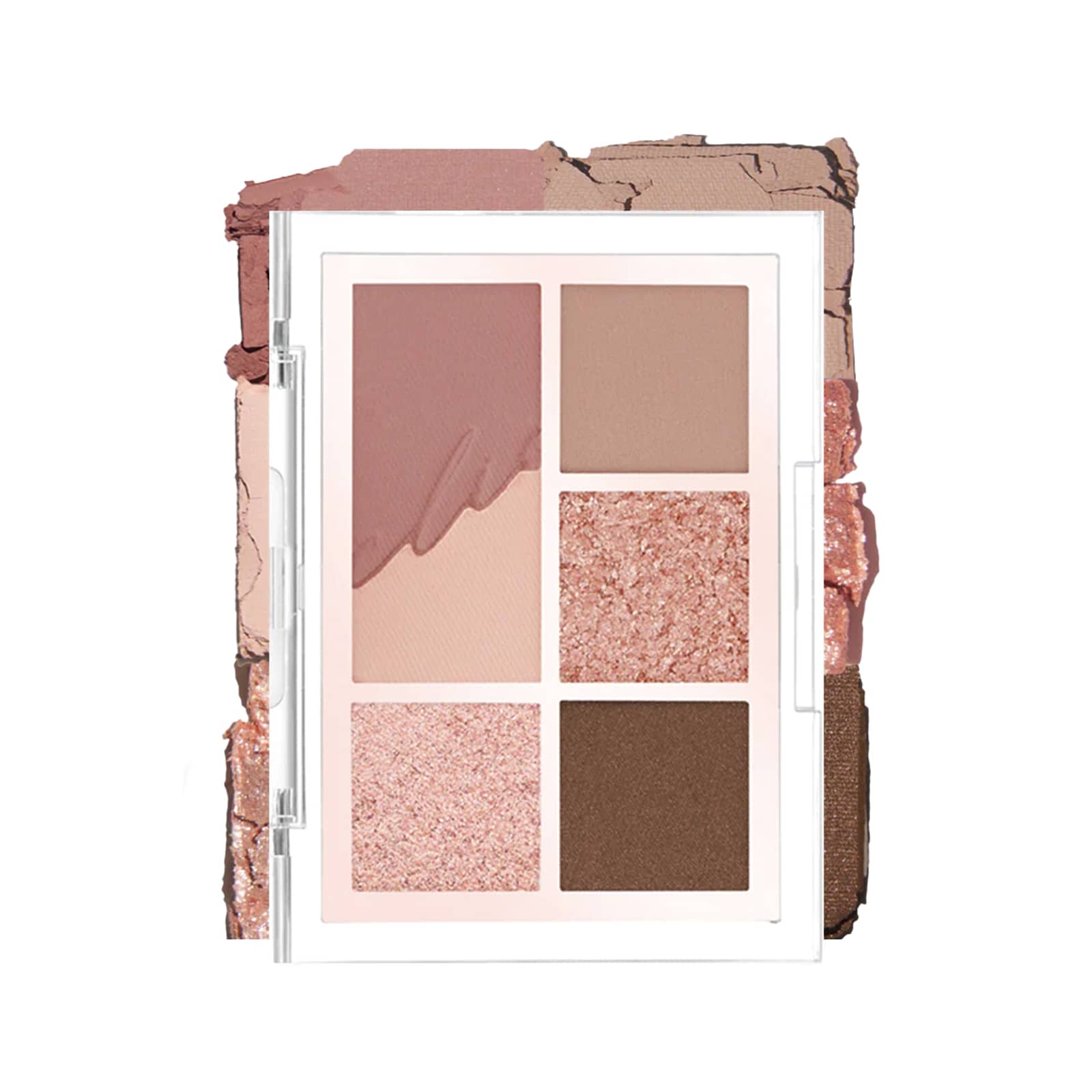 Миниатюрная палитра для глаз, содержащая основные цвета теней в тон с нежными и прозрачными блестками.