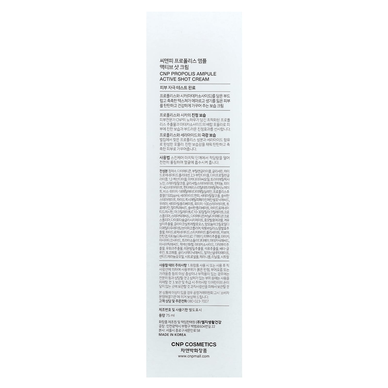 Очищенная вода, диметикон, бутиленгликоль, глицерин, гидрогенизированный полидецен, 2,3-бутандиол, дипропиленгликоль, 1,2-гександиол, масло из семян макадамии, триэтилгексаноин, стеариловый спирт, глицерил стеарат, пантенол, ПЭГ-40 стеарат, пентаэритритил тетраэтилгексаноат, бис-ПЭГ-18 метилэфирдиметилсилан, экстракт прополиса (1500 част./млн), керамид NP, цетеариловый спирт, сорбитан стеарат, гидроксиэтилпиперазинэтансульфоновая кислота, мочевина, цетеарил оливат, ПЭГ-100 стеарат, трометамин, пальмитиновая кислота, сорбитан оливат, гидрогенизированный лецитин, акрилат/c10-30 алкил акрилат кроссполимер, стеариновая кислота, диметикон/винил диметикон кроссполимер, дикалия глицирризат, фильтрат после ферментации дрожжей, экстракт омелы, гликозилтрегало, аммоний акрилоил диметилтаурат/ВП сополимер, ферментированный экстракт лактобактерий/соевых бобов, гидролизат гидрогенизированного крахмала, карбомер, ксантановая камедь, диоксид титана (CI 77891), экстракт корня мандарина, слюда, азиатикозид, тринатриевая ЭДТК, мадекассовая кислота, азиатиковая кислота, красный оксид железа, мадекассосид, экстракт корня декантуса, экстракт инжира, экстракт листьев мелиссы, экстракт граната, бета-глюкан, токоферол, глициретиновая кислота , аргинин глутамат, масло из цветков ароматной герани, цитронеллола, гераниола, линалоол, цитраль.