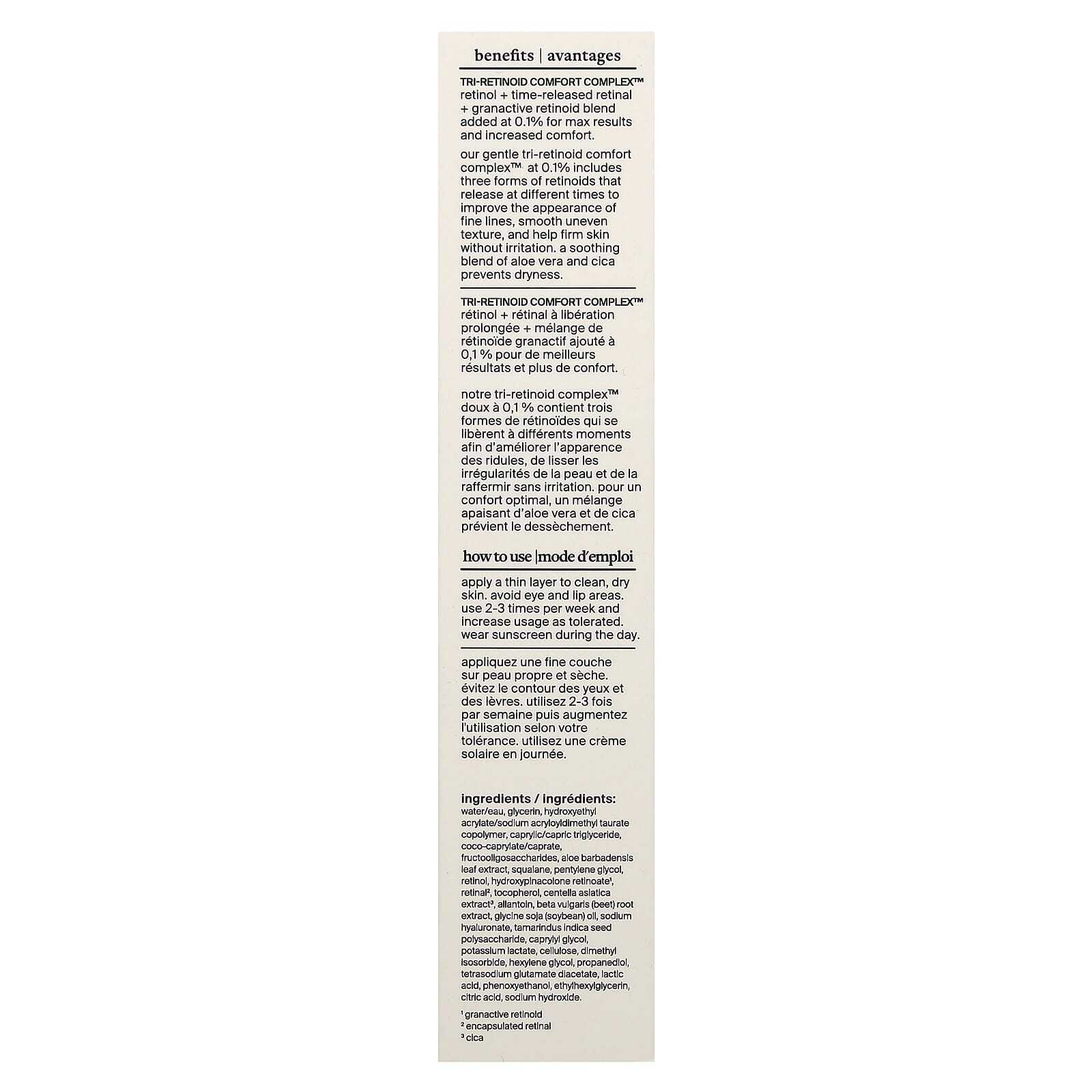 Смесь ретинола Tri-Retinoid Comfort Complex™, ретиналя с замедленным высвобождением и гранатоактивных ретиноидов в количестве 0,1% для достижения максимальных результатов и повышенного комфорта.